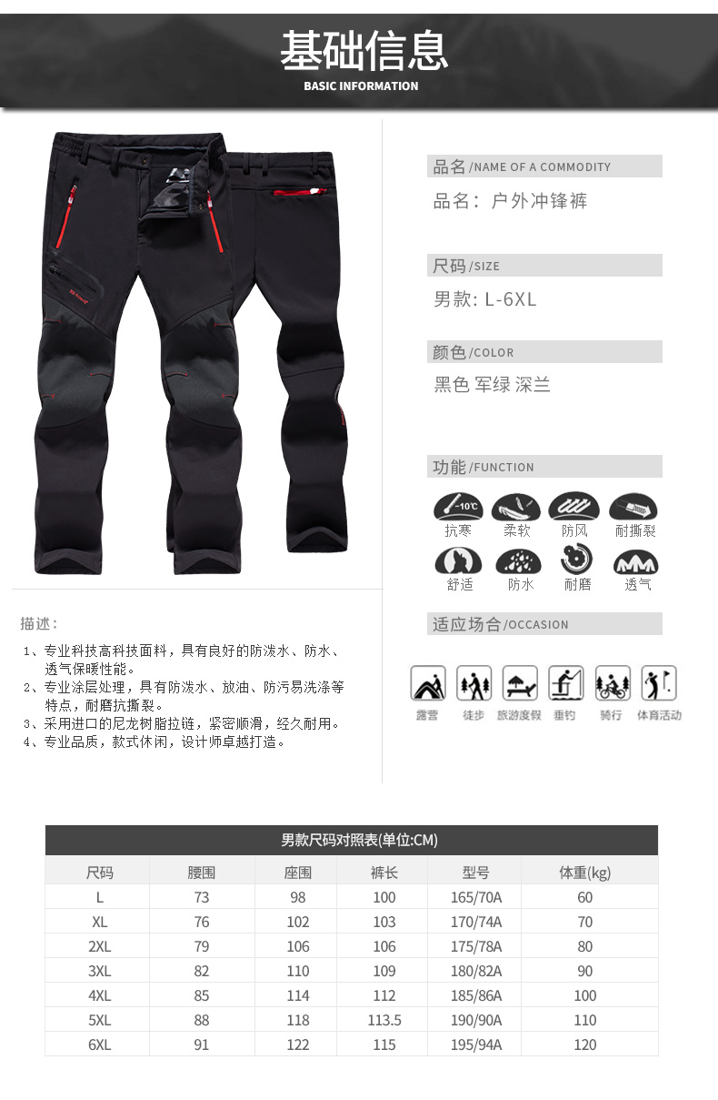 남성과 여성을위한 야외 충전 바지 가을과 겨울 기모 두꺼운 방풍 방수 플러스 사이즈 따뜻한 양털 등반 스키 바지스토어 가기
