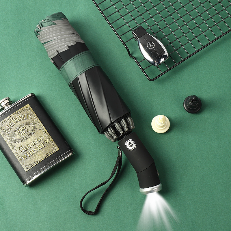 70% off 자동차 후진 우산 LED 조명 접이식 블랙 글로시 파라솔 자외선 차단 남성 비즈니스 우산 광고 LED