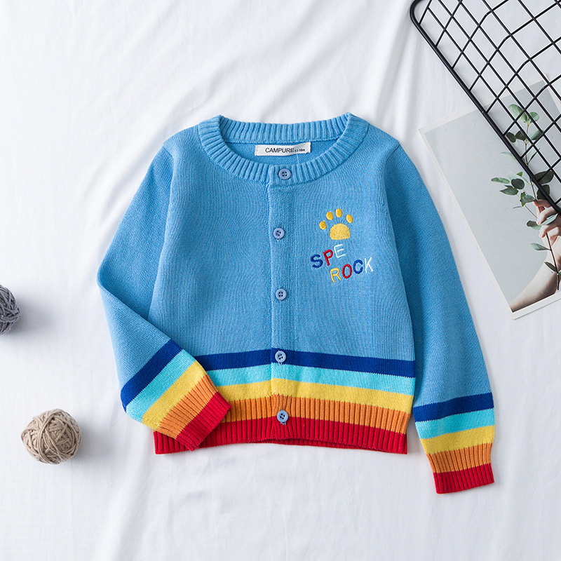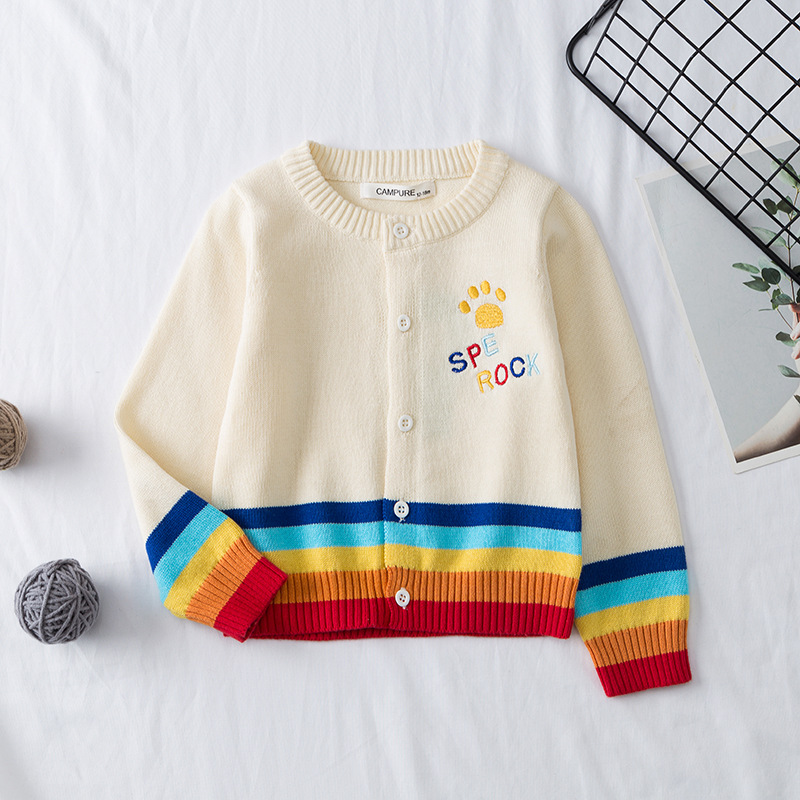 어린이 스웨터 2022 봄과 가을 면 니트 가디건 레인보우 스트라이프 자수 재킷 모든 경기 어린이 스웨터스토어 가기