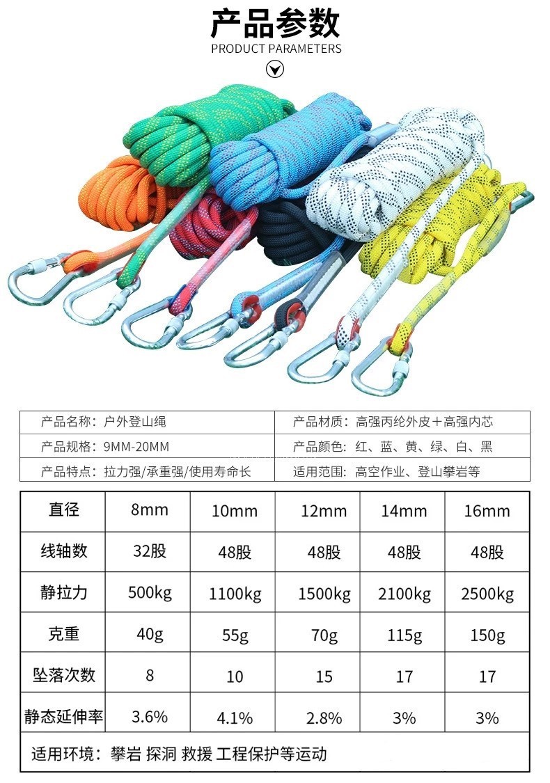 탈출용 로프 폴리에스터 등산 로프 야외 정적 등반 로프 하강 로프 고공 작업용 로프