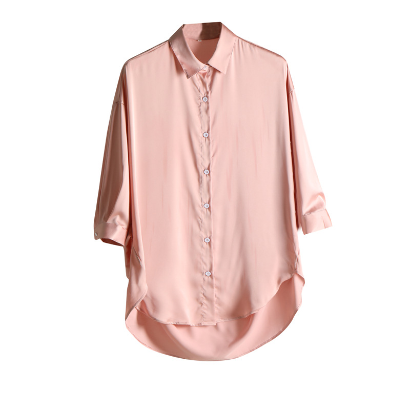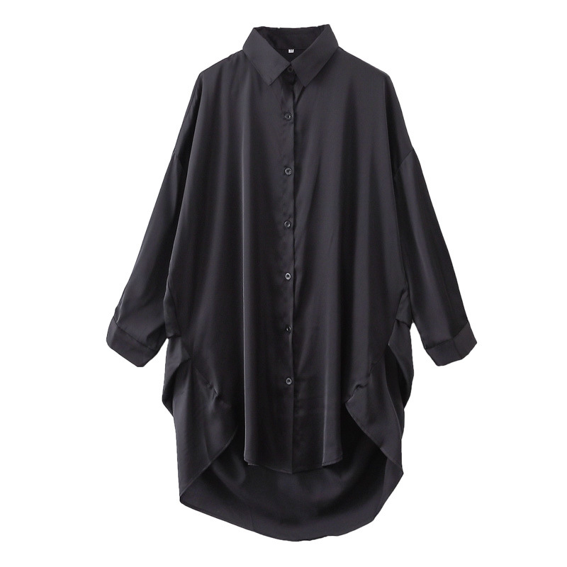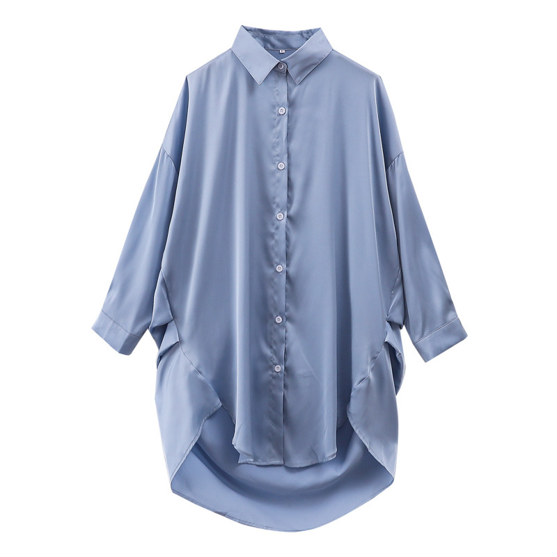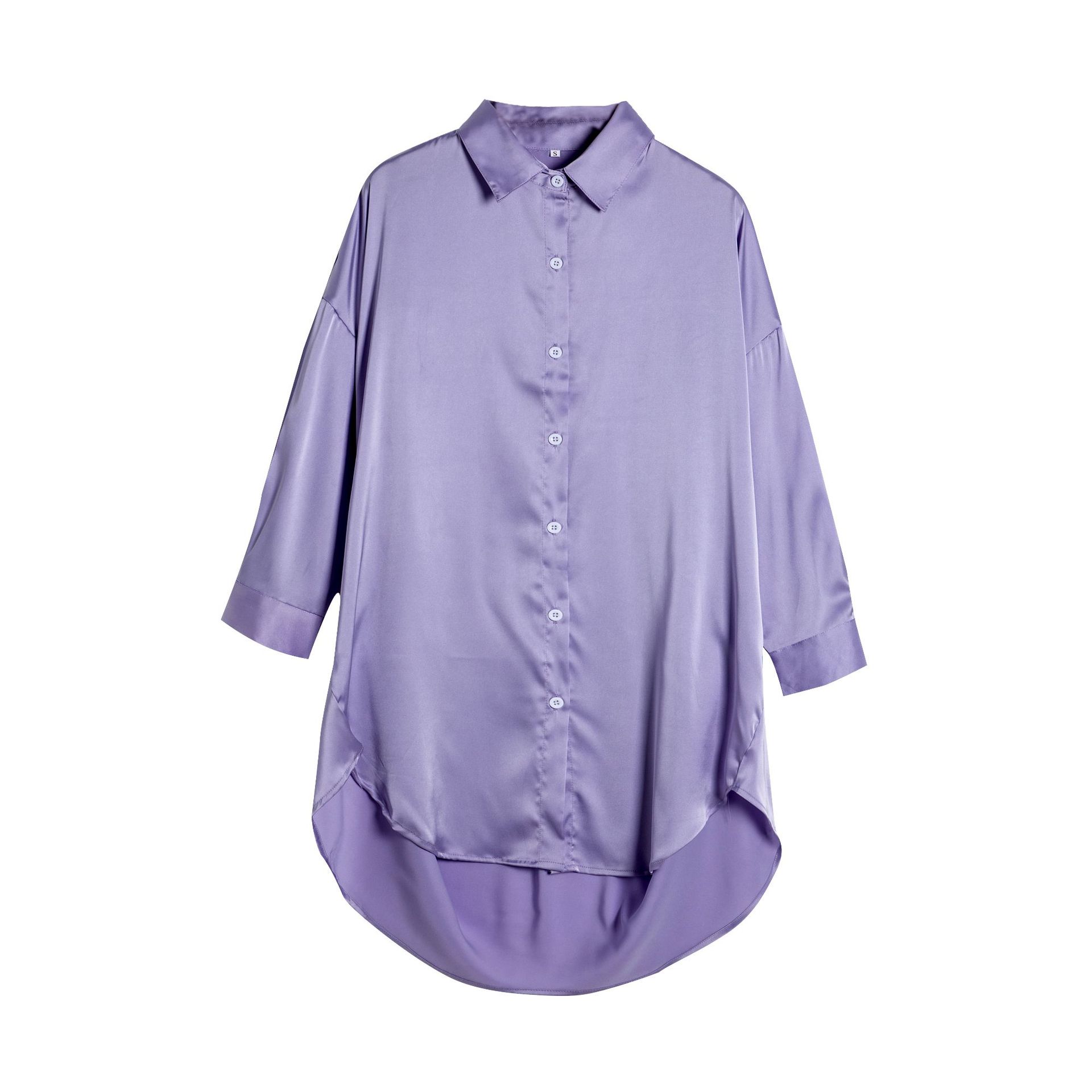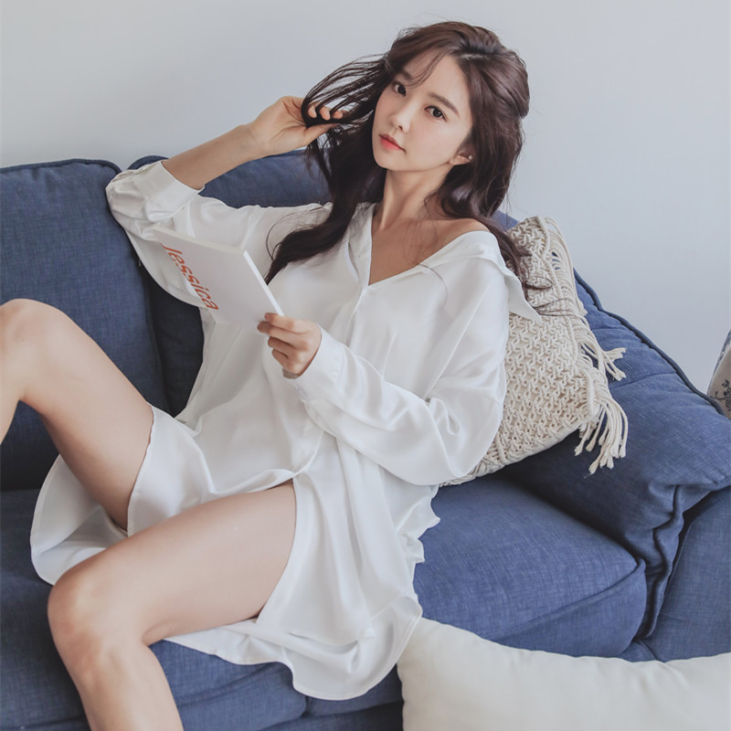 봄과 여름 특대 스타일 잠옷 여자의 아이스 실크 가정 옷 겉옷을 입고 긴 소매 섹시한 남자 친구 스타일 셔츠 잠옷스토어 가기