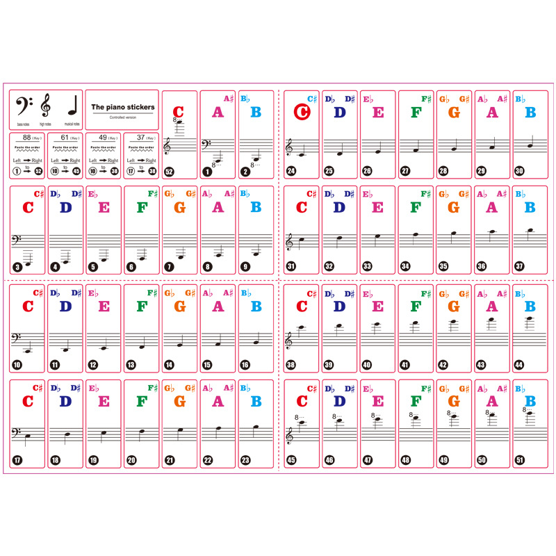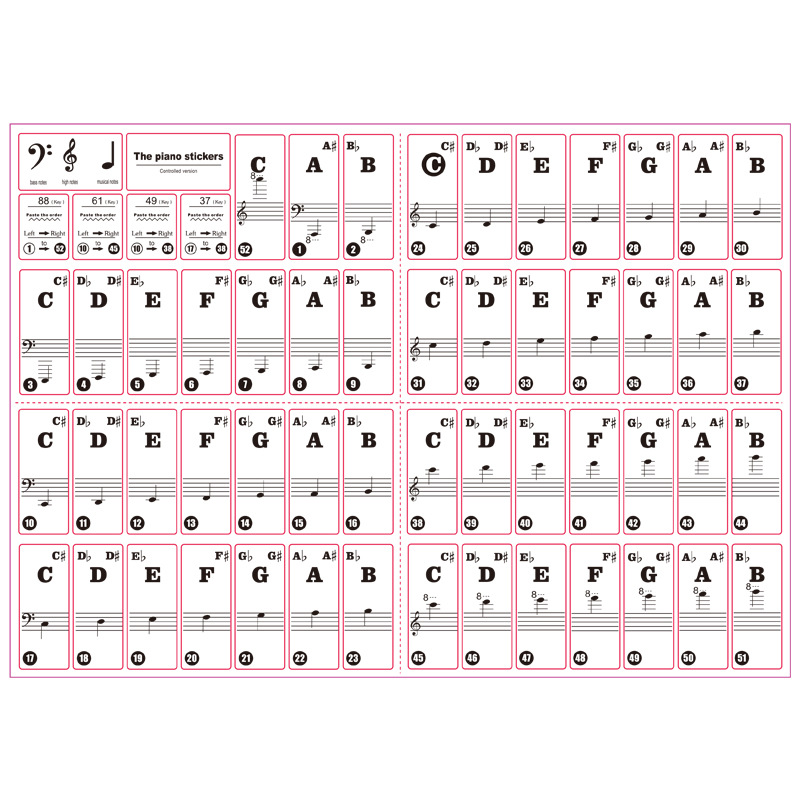 88 키 615449 투명 피아노 키보드 스티커 전자 장기 스티커 뮤지컬 스케치 스케치 노트 키 스티커 크로스 보더