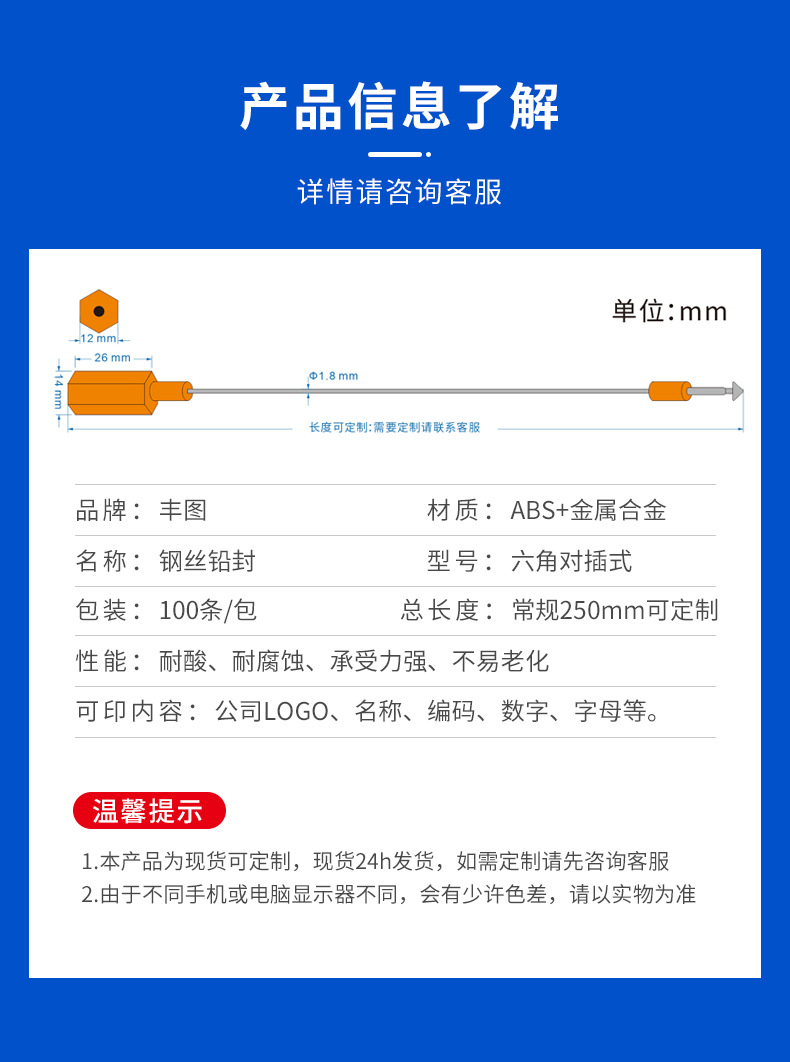 일회용 스틸 와이어 씰 오일 탱커 물류 씰 씰 리드 씰 회전율 박스 컨테이너 씰 플러그인형 25cm스토어 가기