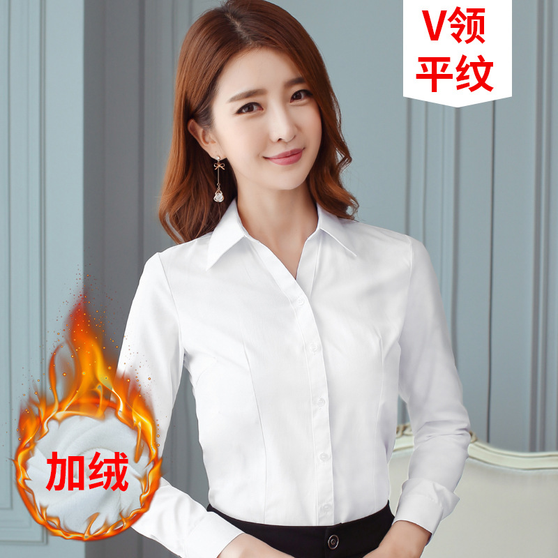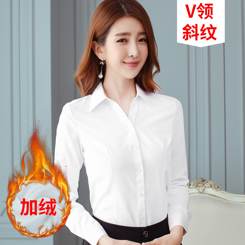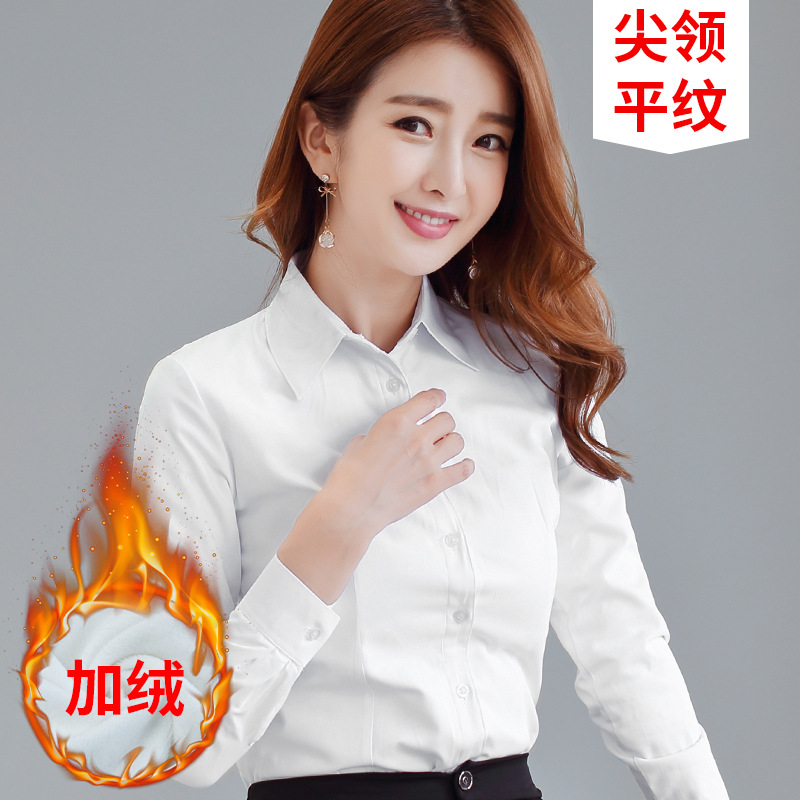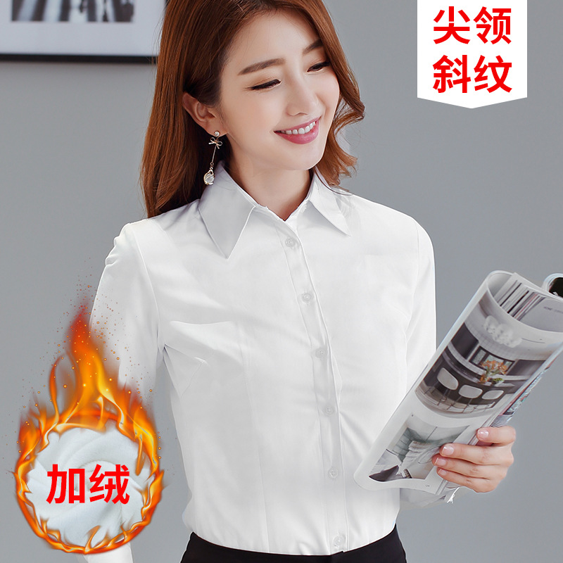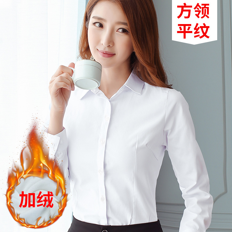 흰 셔츠 여성의 가을과 겨울 기모 긴팔 따뜻한 두꺼운 작업복 전문 원피스 흰색 셔츠 작업복