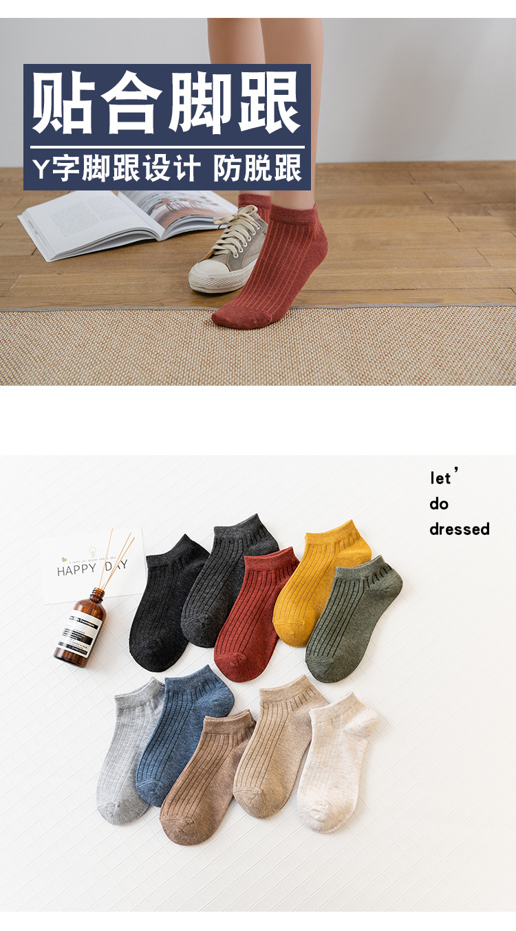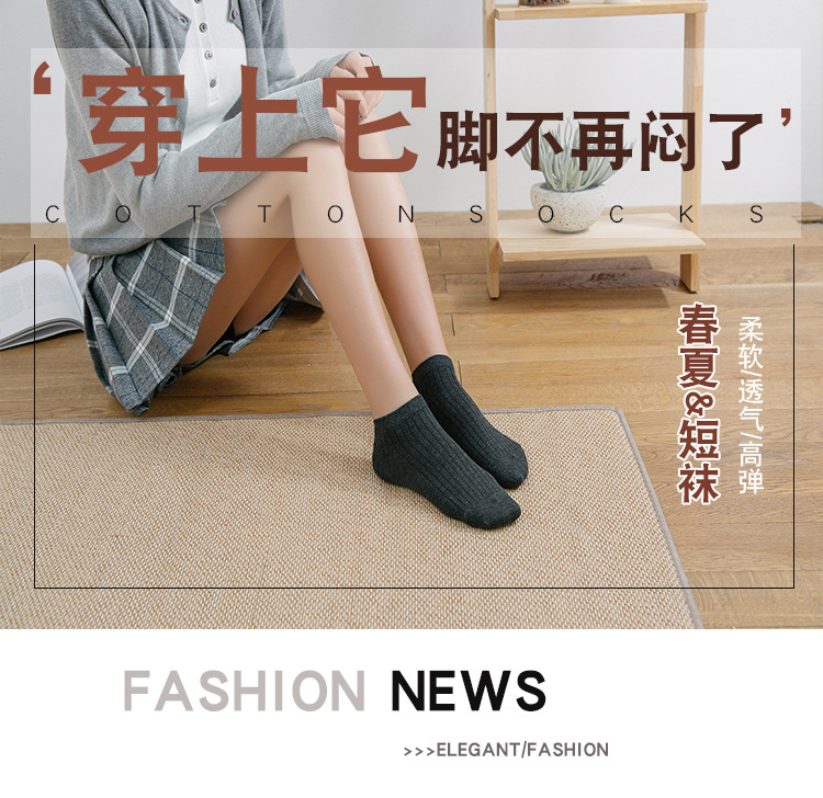 여성용 양말 봄 여름 얇은 양말 단색 일본 복고풍 얕은 입 짧은 면 양말 검은색 여성용 양말 보트 양말 여성용 트렌디 양말