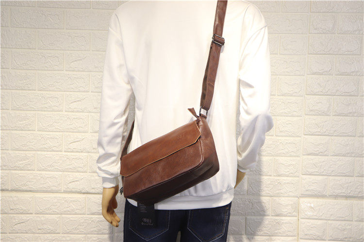 Threebox 일본식 유행 남자의 어깨 가방 복고풍 크로스 스타일 유행 브랜드 부드러운 가죽 메시지 가방 자전거 가방스토어 가기
