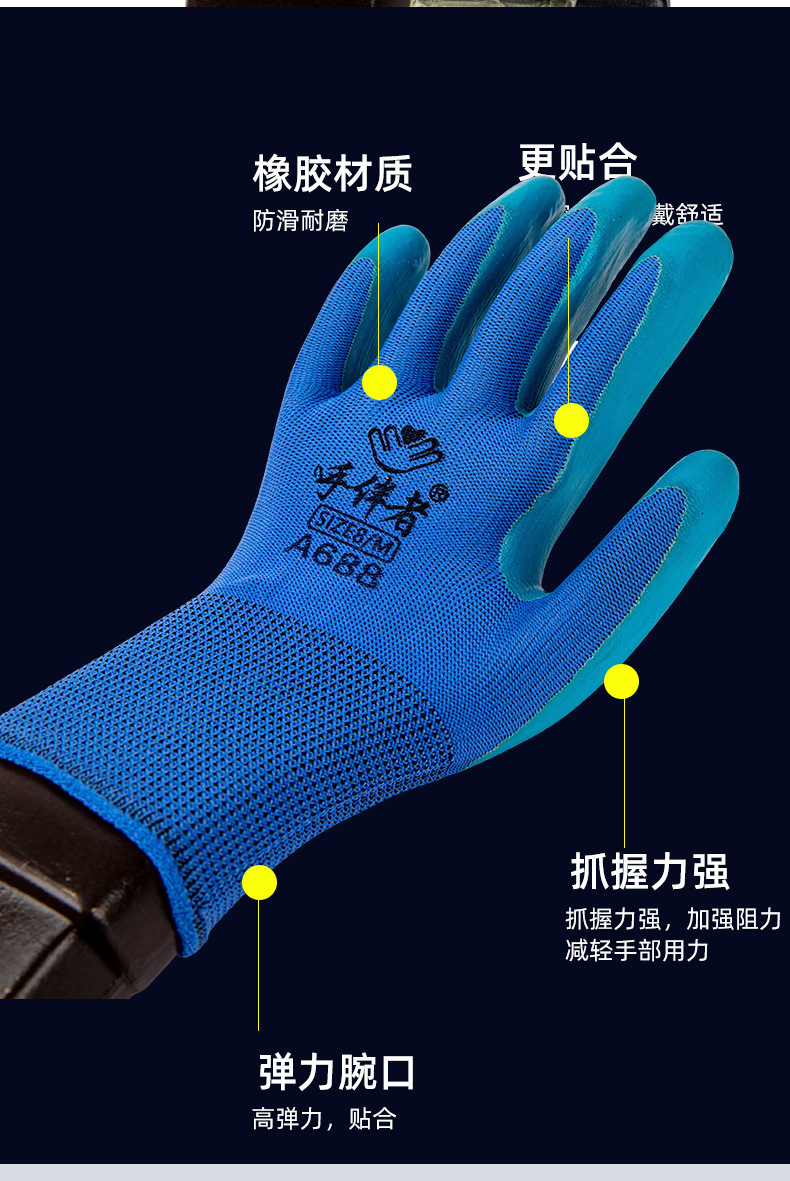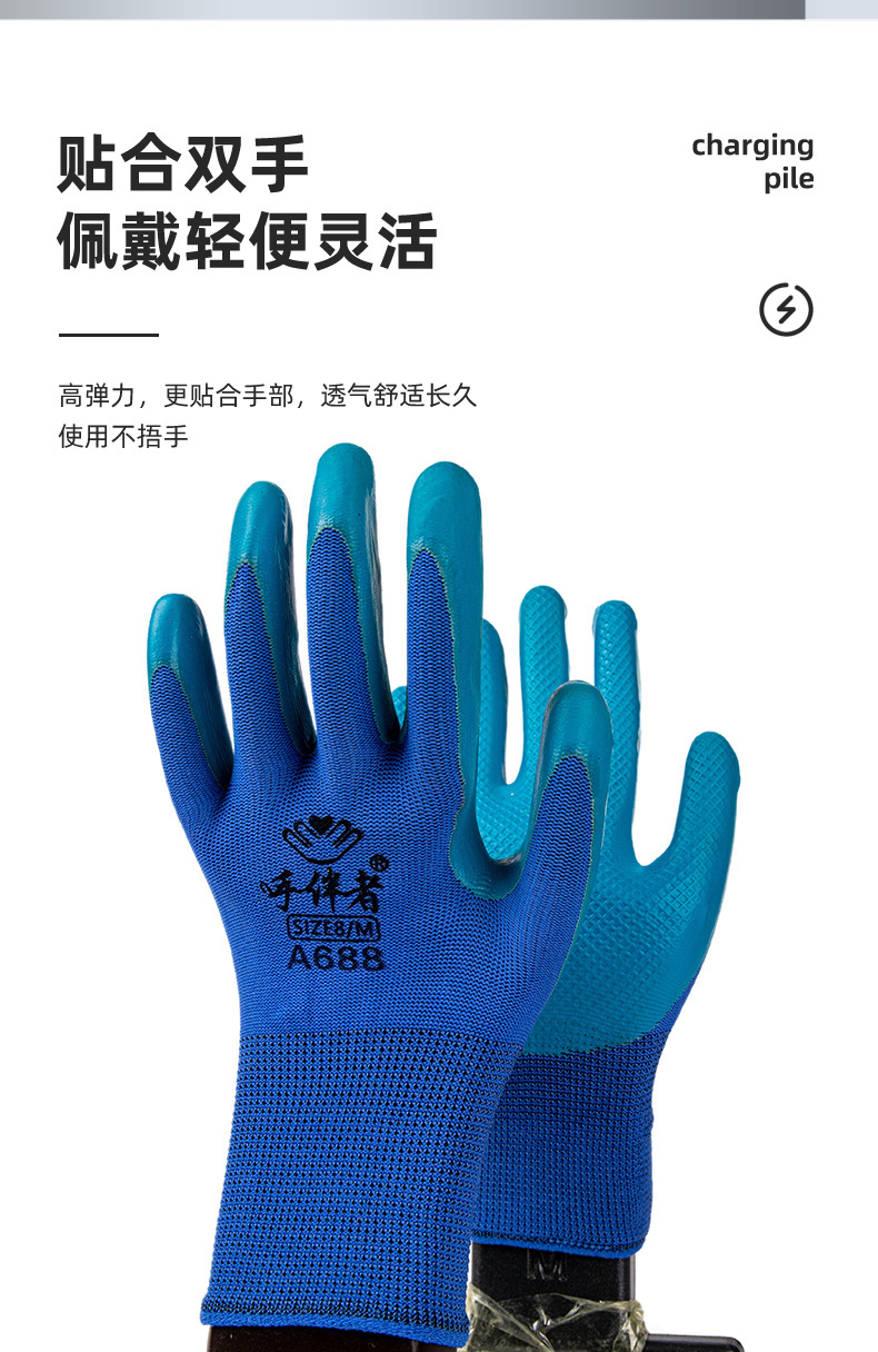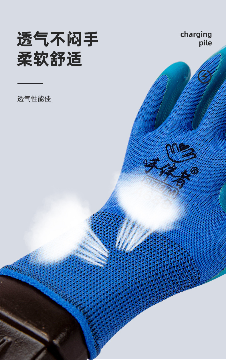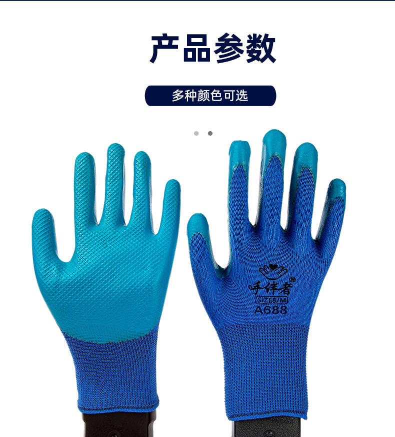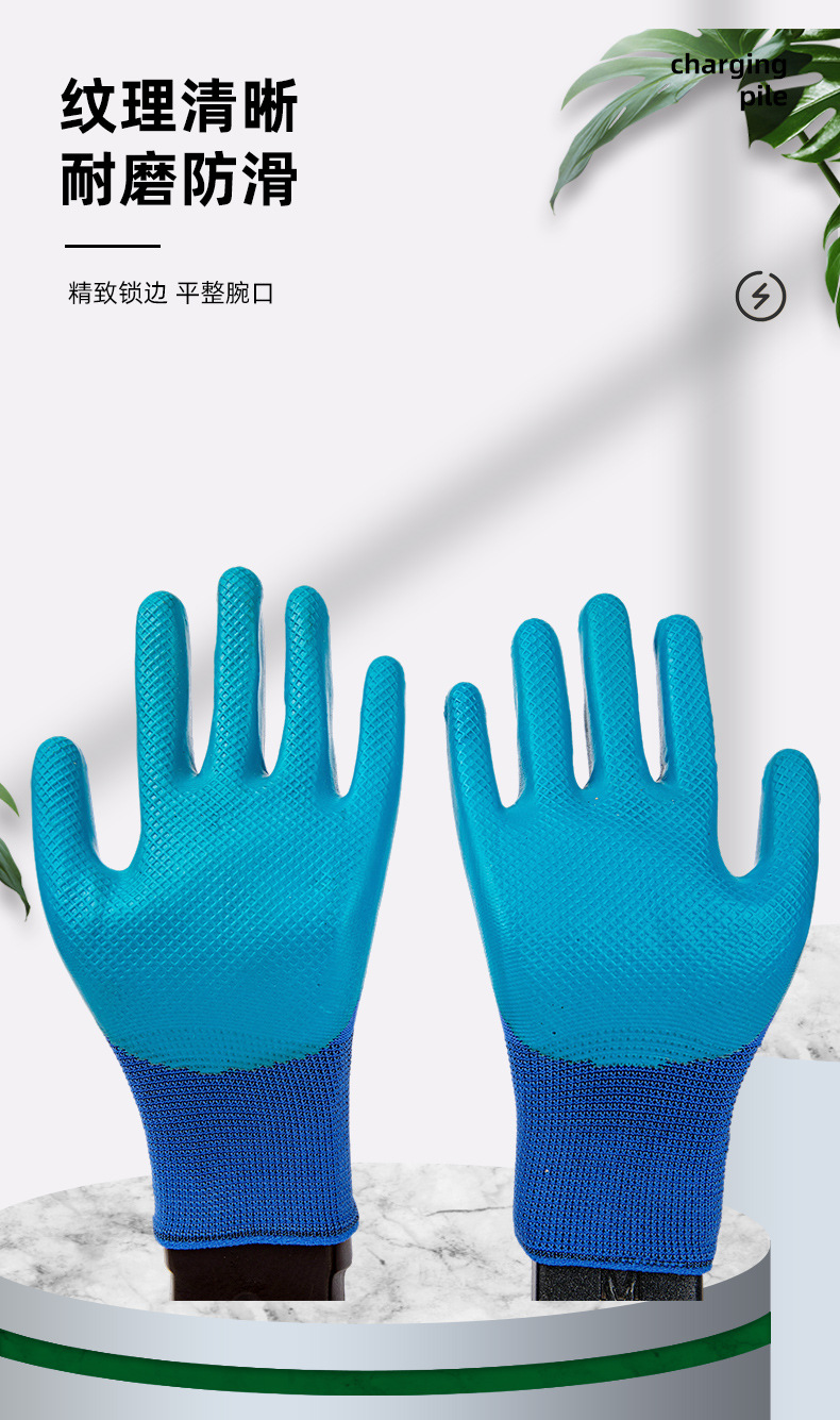 13 핀 나일론 고무 양각 장갑 파란색 양각 사이트 담근 장갑 노동 장갑 장갑 도매스토어 가기