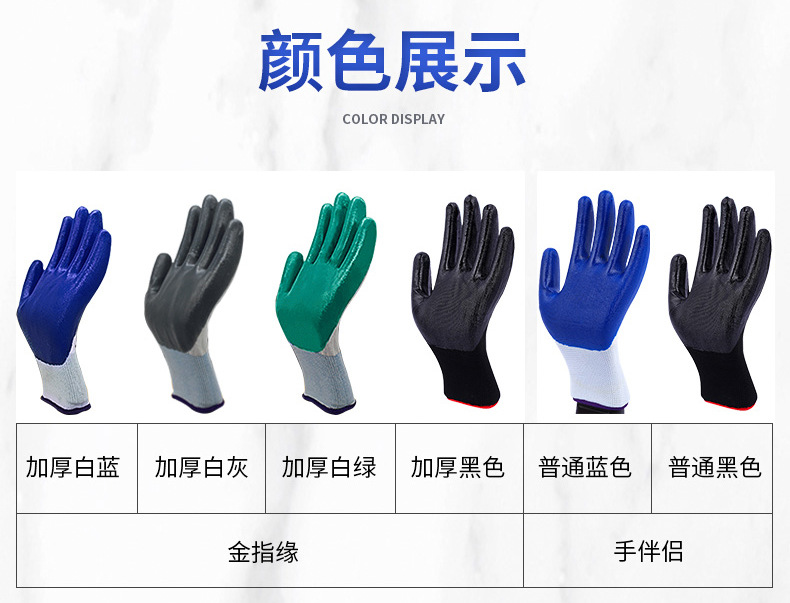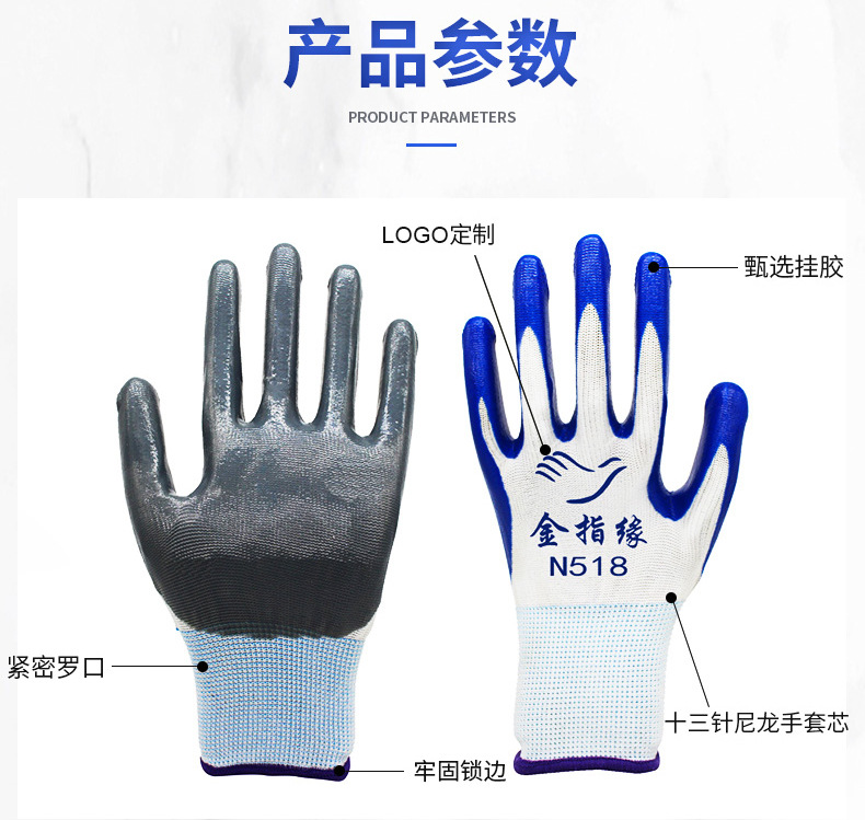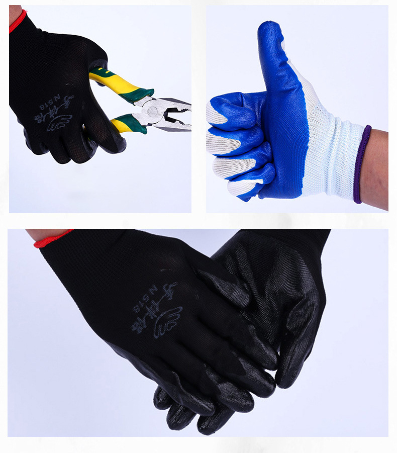 13 핀 나일론 니트릴 장갑 접착제 디핑 장갑 접착제 교수형 노동 장갑 통기성 나일론 니트릴 장갑