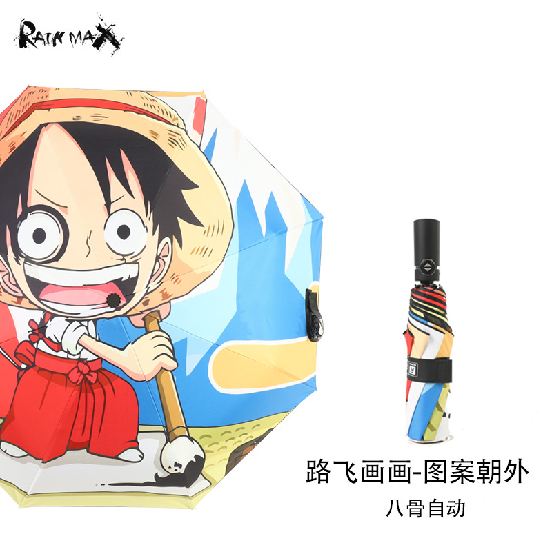 원피스 바다의 왕 애니메이션 루피 솔론 완전 자동 맑고 비가 오는 이중 목적 우산 플러스 방풍 태양 우산 남성과 여성을위한스토어 가기