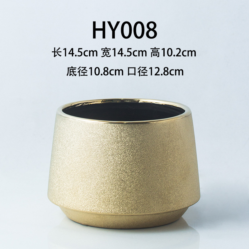 북유럽 예술 장식품 빛 럭셔리 현대 다육 질 화분 홈 금도금 수제 꽃 배열 세라믹 장식품