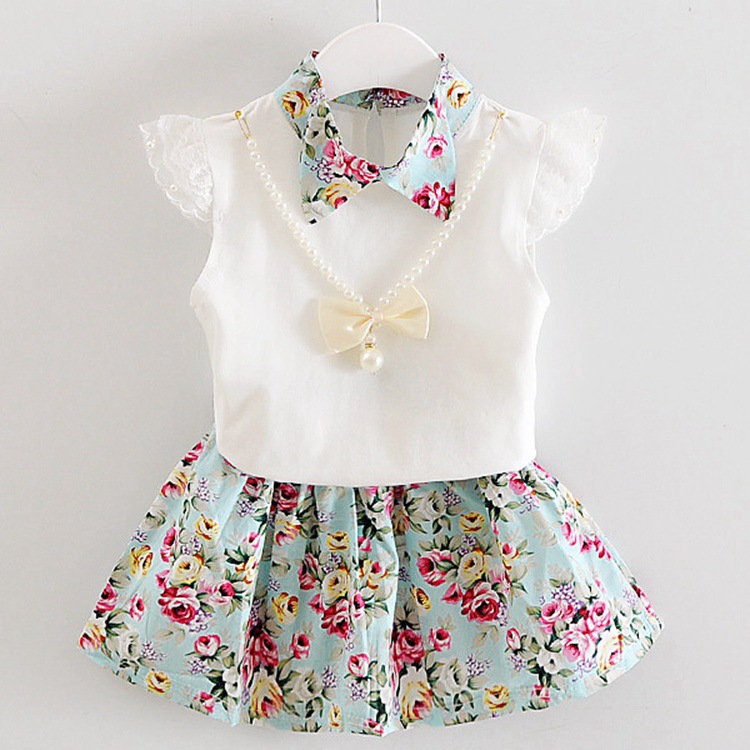 • 파란색 짧은 소매 꽃 치마