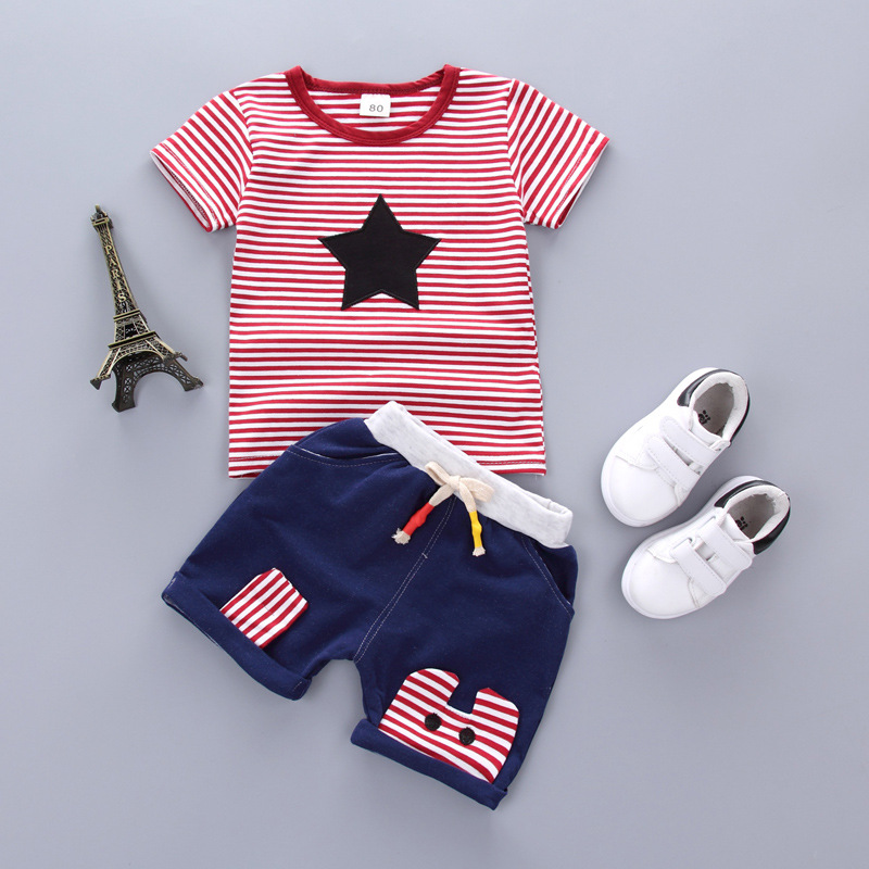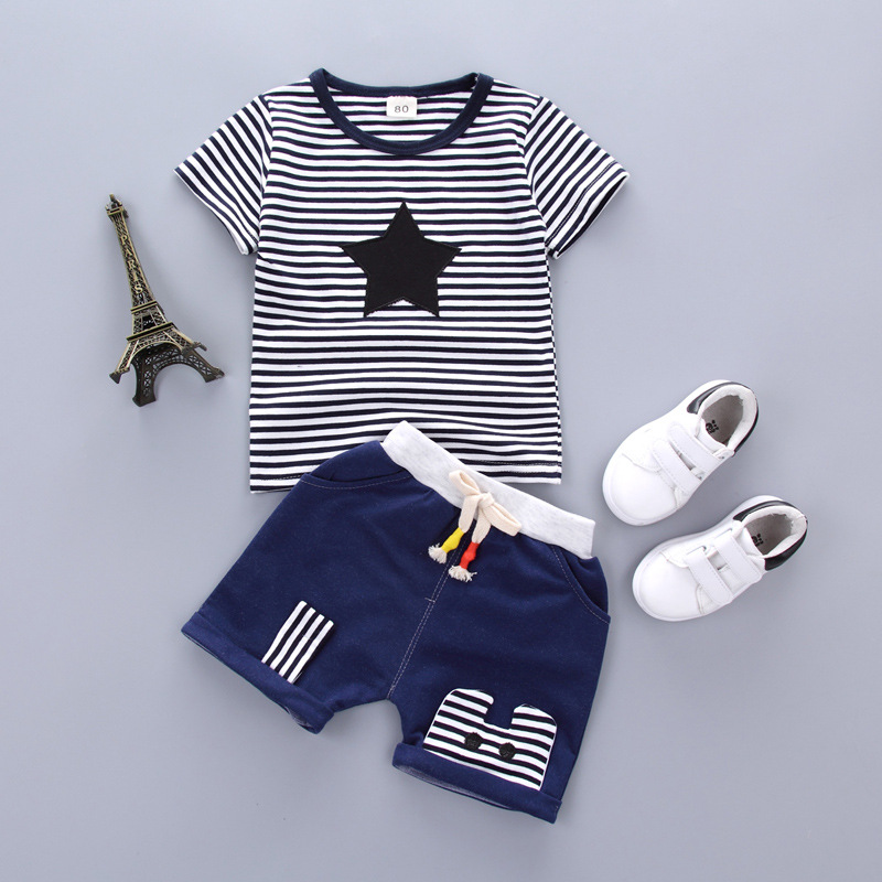 아동복 반팔 세트 2020 새로운 한국 스타일 면과 린넨 긴 수명 잠금 2 피스 반팔 티셔츠 반바지 여름용 캐주얼웨어스토어 가기