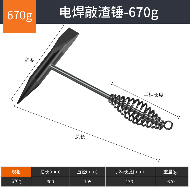 고탄소강 용접공을 위한 특수 슬래그 망치, 다기능 고경도 양두 검정색 500g 스프링 핸들 슬래그 망치스토어 가기