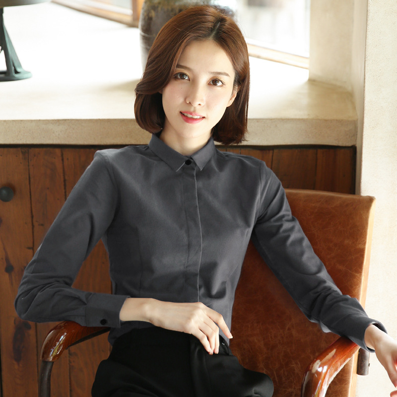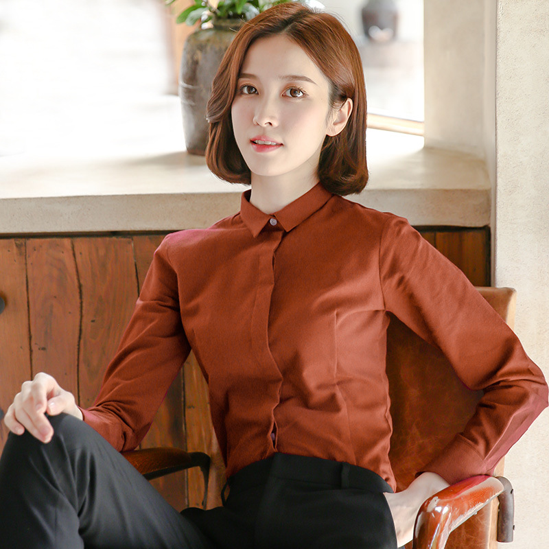 슈 팬 샌딩 셔츠 여성용 단색 긴 소매 전문 블랙 새로운 면베이스 두꺼운 따뜻한 셔츠