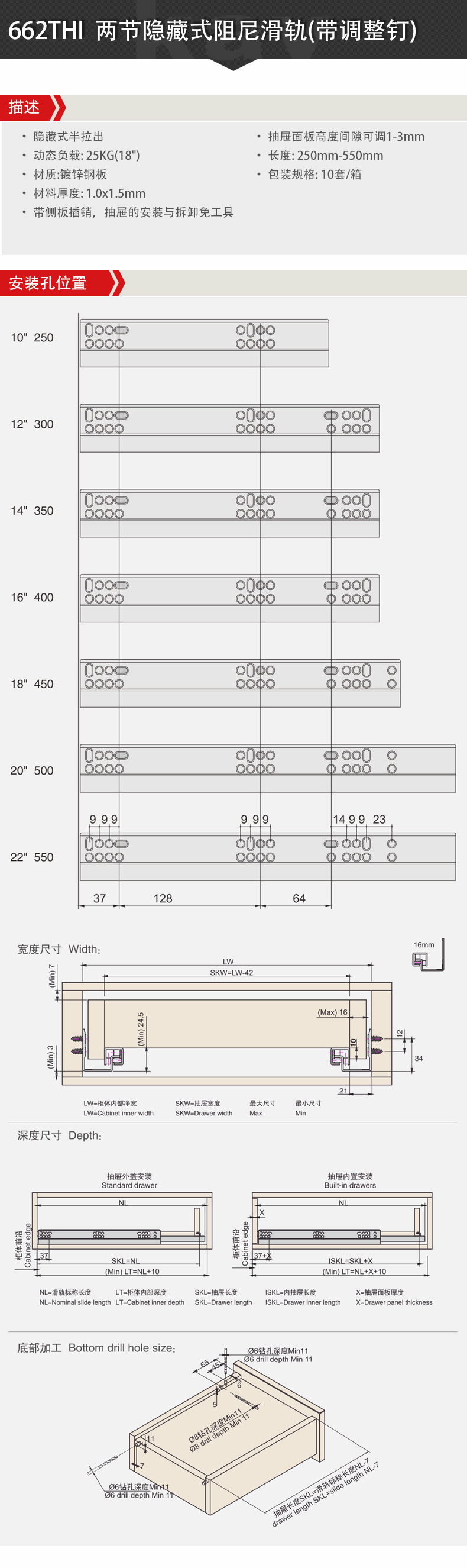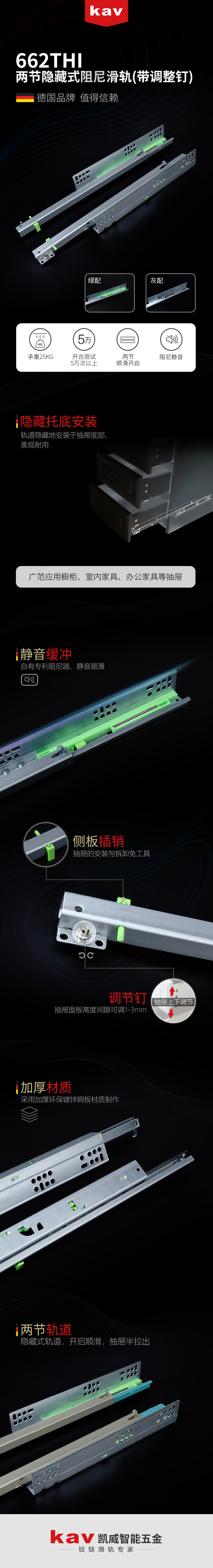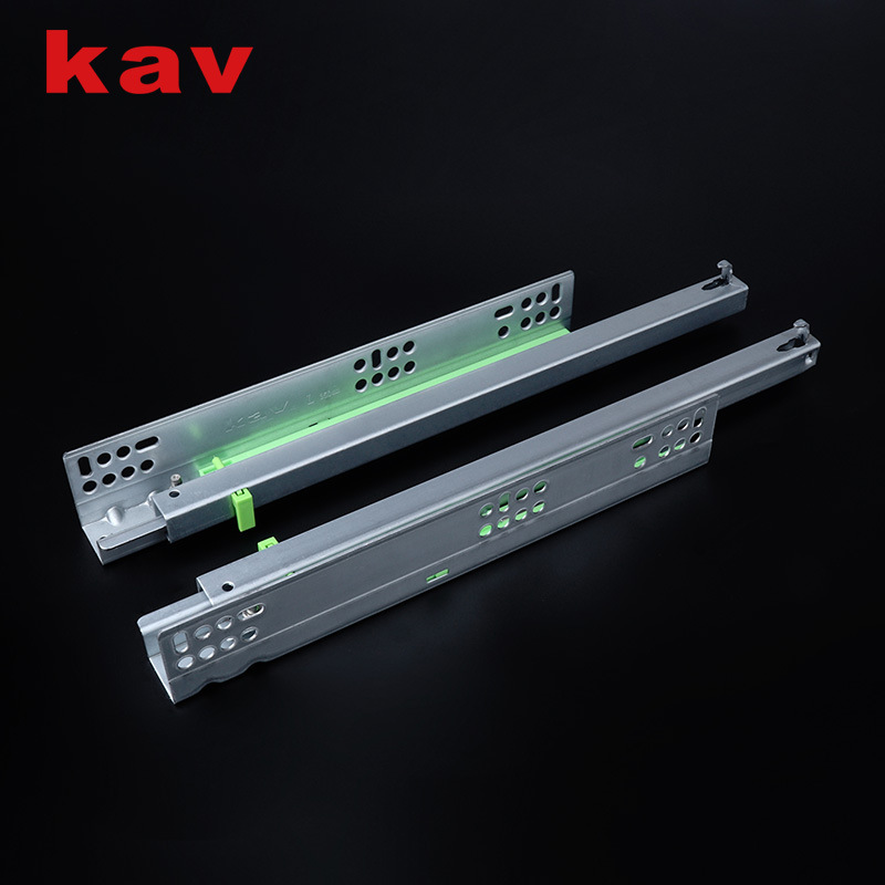 Kav 직접 공급 2 섹션 하단 레일 숨겨진 버퍼 하단 장착 슬라이드 레일 하단 자체 프라이밍 캐비닛 서랍 감쇠 가이드 레일