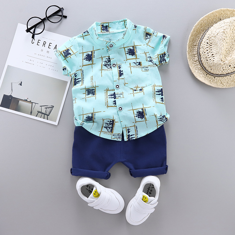 크로스 보더 아동복 여름 새로운 아동복 여름 착용 소년 아기 유아 어린이 세트 반팔 세트 투피스 유행 세트