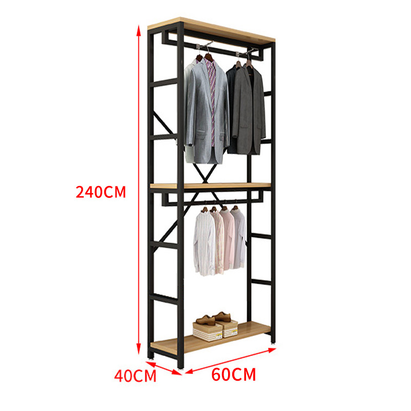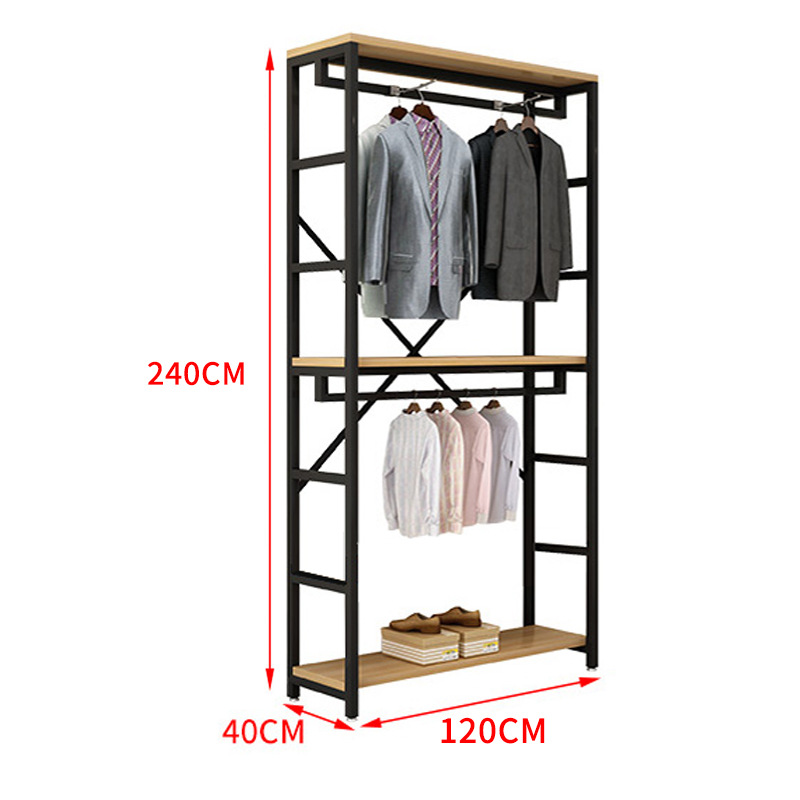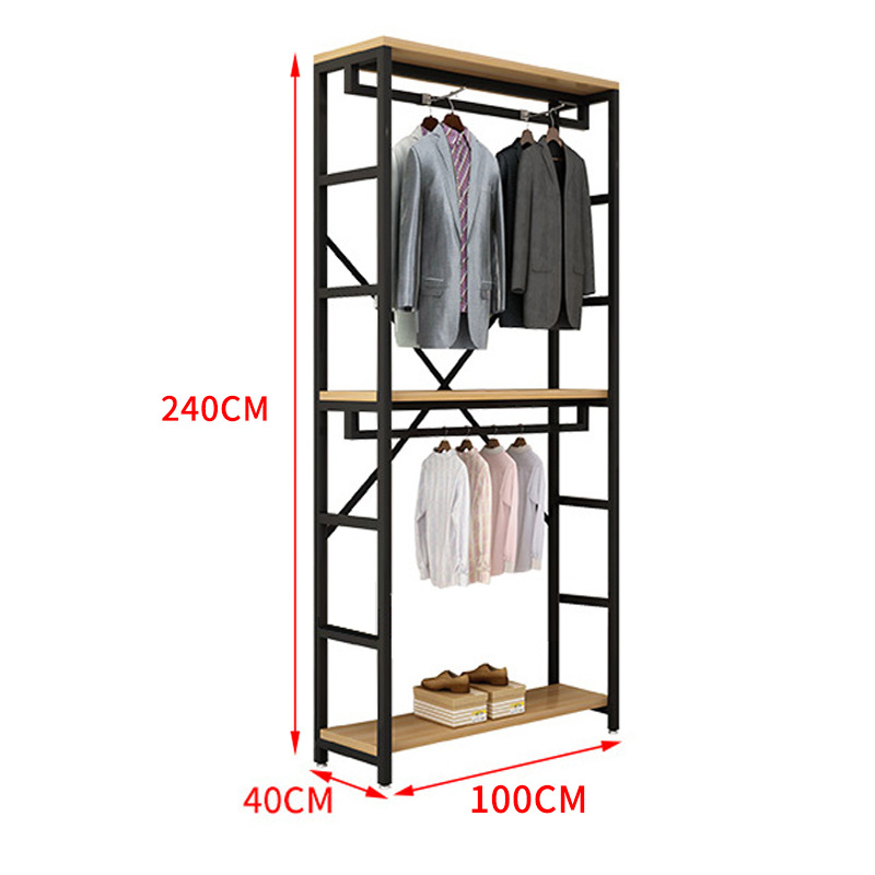 의류 매장 진열대 남녀 의류 매장 선반 진열장 철제 나무 이중층 옷걸이 수납 선반