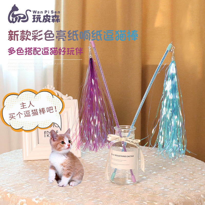 새로운 색상 링 종이 재미있는 고양이 스틱 요정 창조적 인 귀여운 대화 형 재미있는 고양이 장난감 재미 PVC 컬러 바 재미있는 고양이 스틱스토어 가기