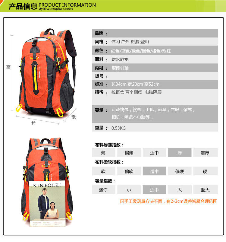 새로운 스포츠 등산 가방 초경량 여행 배낭 피트니스 학생 배낭 야외 사이클링 학교 시즌스토어 가기