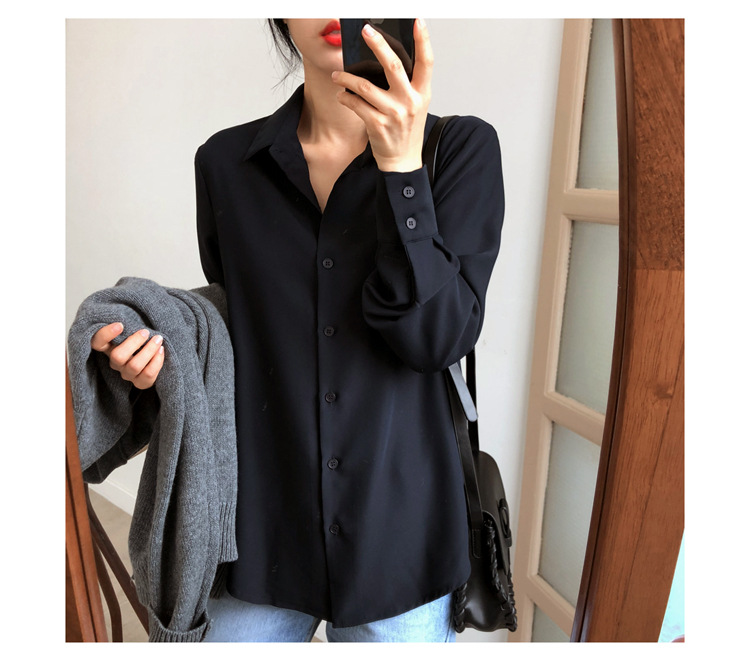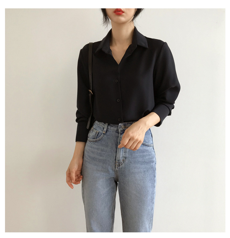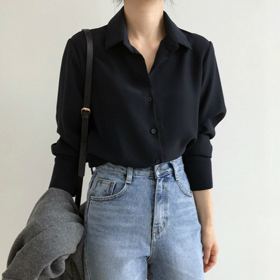 여성용 쉬폰 셔츠 2025 봄 신작 한국식 루즈 슬리밍 셔츠 블랙 전문 OL 다용도 탑 트렌디스토어 가기