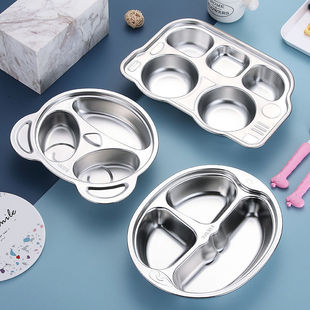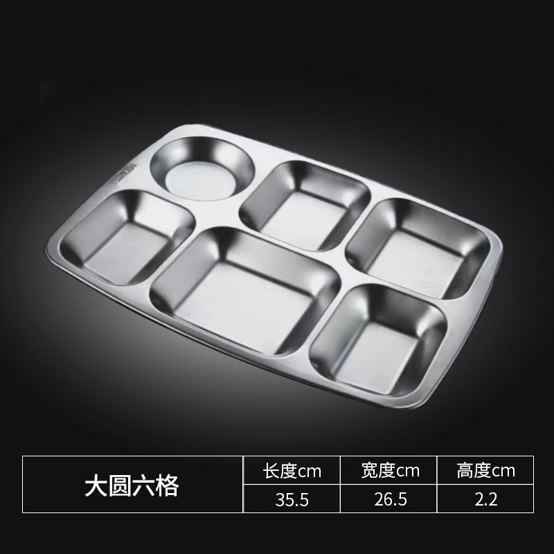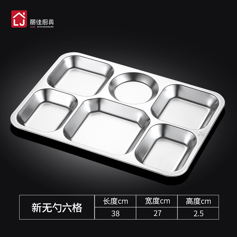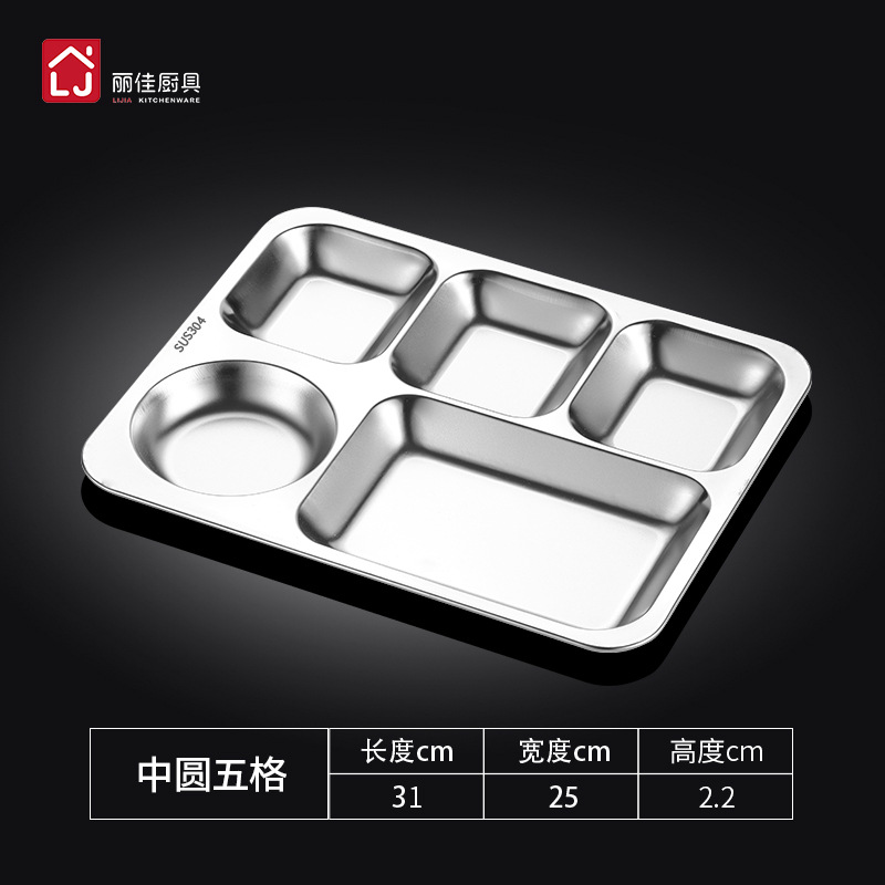 304 스테인레스 스틸 디너 플레이트 매점 중국 어린이 패스트 푸드 플레이트 성인 접시 학생 두꺼운 광장 분할 쌀 플레이트스토어 가기