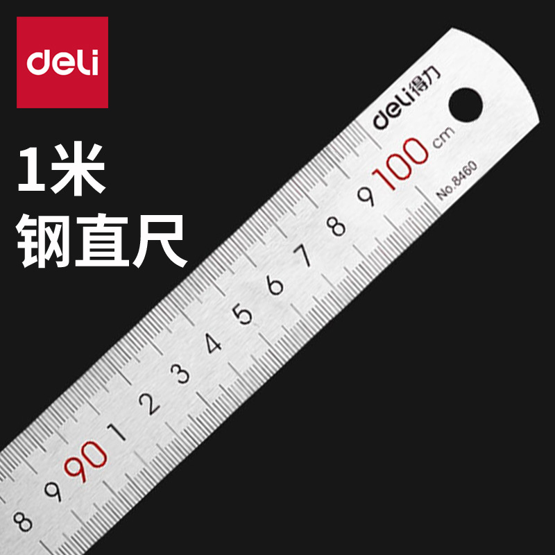 델리 8460 강철 자 1 미터 규모 긴 자 100cm 강철 자 측정 드로잉 자 스테인레스 스틸 도구스토어 가기