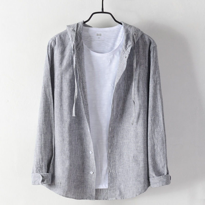 남자의 면 린넨 캐주얼 후드 긴 소매 셔츠 신선한 예술적 청소년 린넨 셔츠 9208스토어 가기