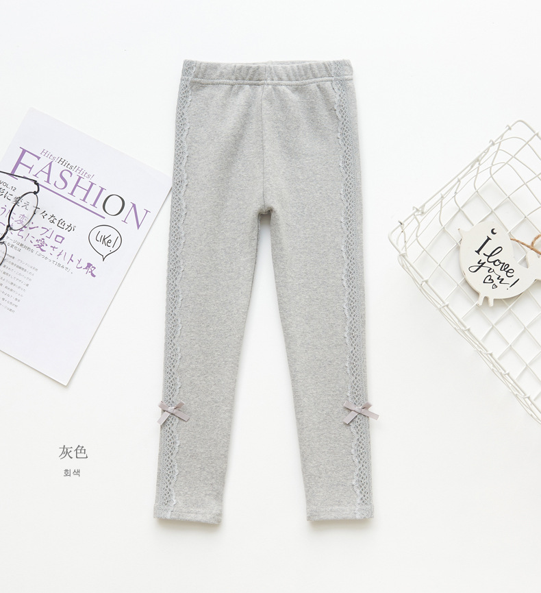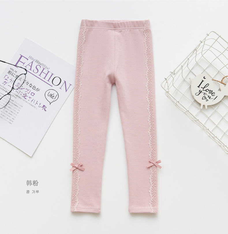 봄과 가을 소녀 레깅스 한국 스타일 레이스 트림 리본 소녀 바지 순면 아동 레깅스스토어 가기