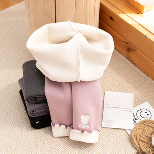 2021冬季加绒儿童裤子 卡通绣花女童打底裤 羊羔绒加绒保暖童裤子 RMB:19.3