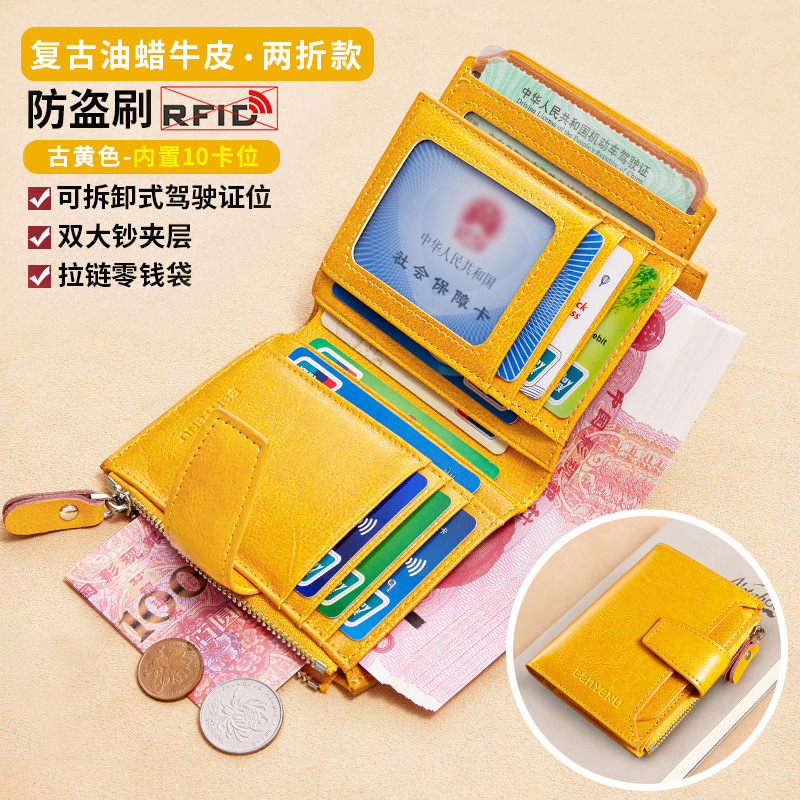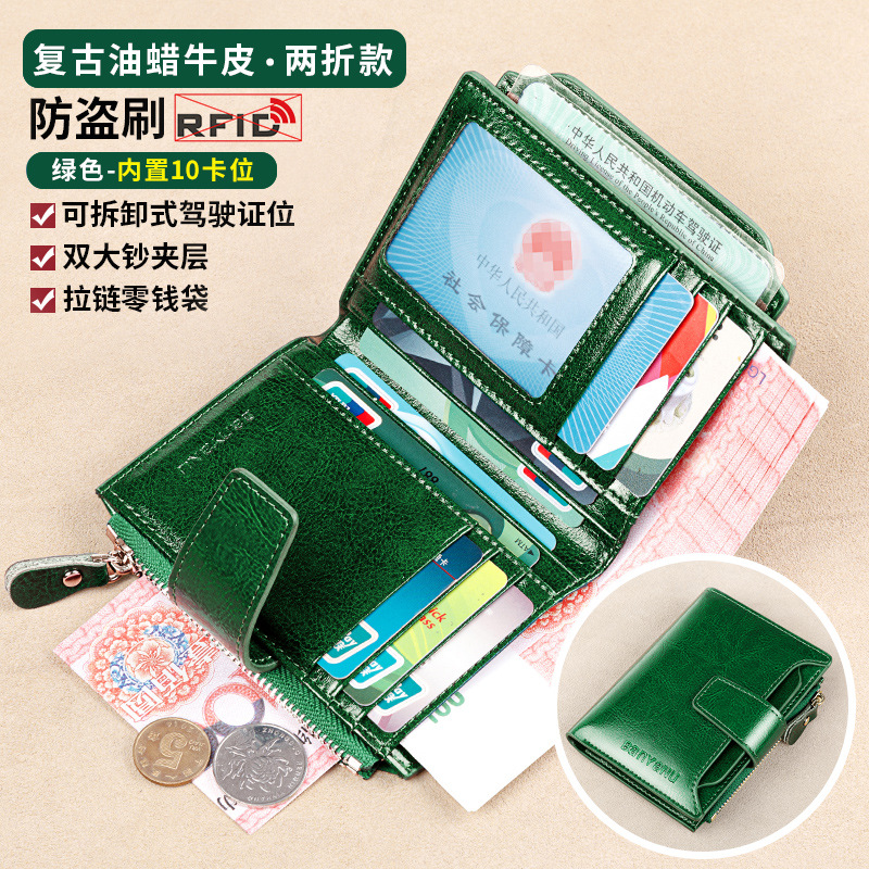 2025 새로운 정품 가죽 여성용 지갑 다기능 도난 방지 카드 가방 짧은 대용량 접이식 지퍼 지갑