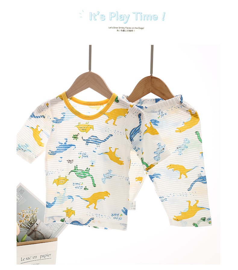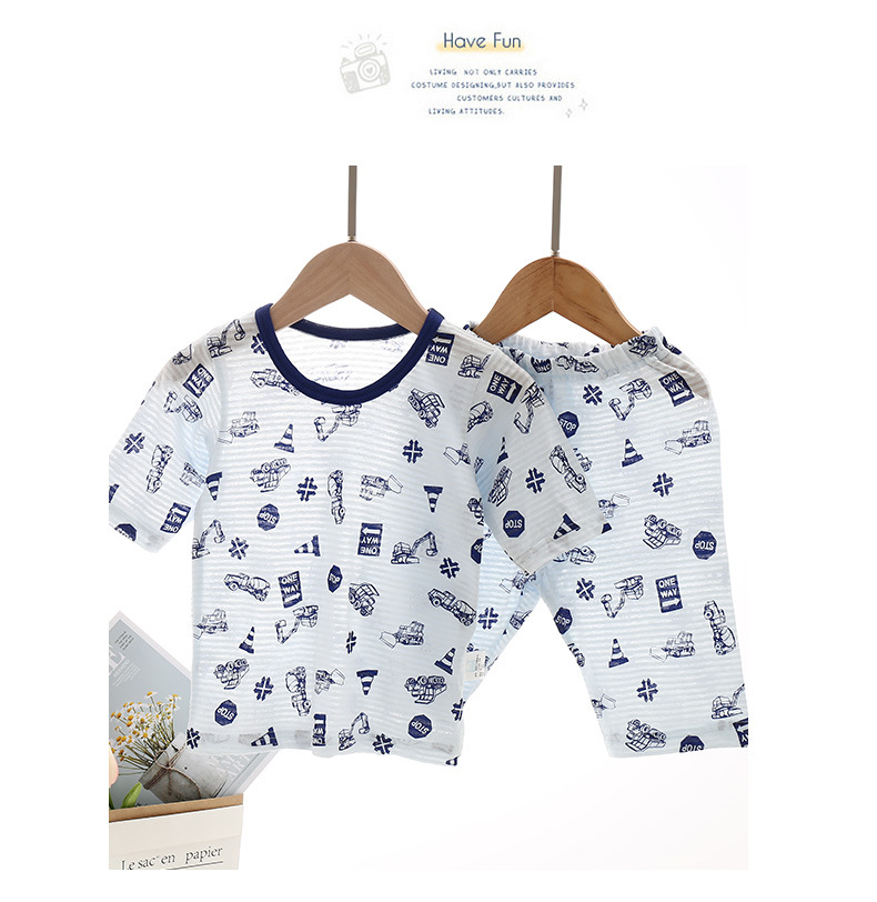 만화 얇은 남자의 아기 풀오버 여름 새로운 세트 크루넥 티셔츠 자른 플랫 허리 바지 두 세트스토어 가기