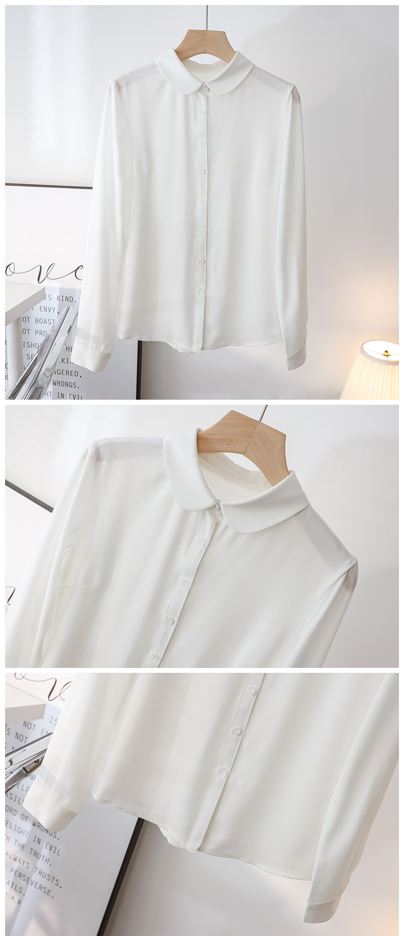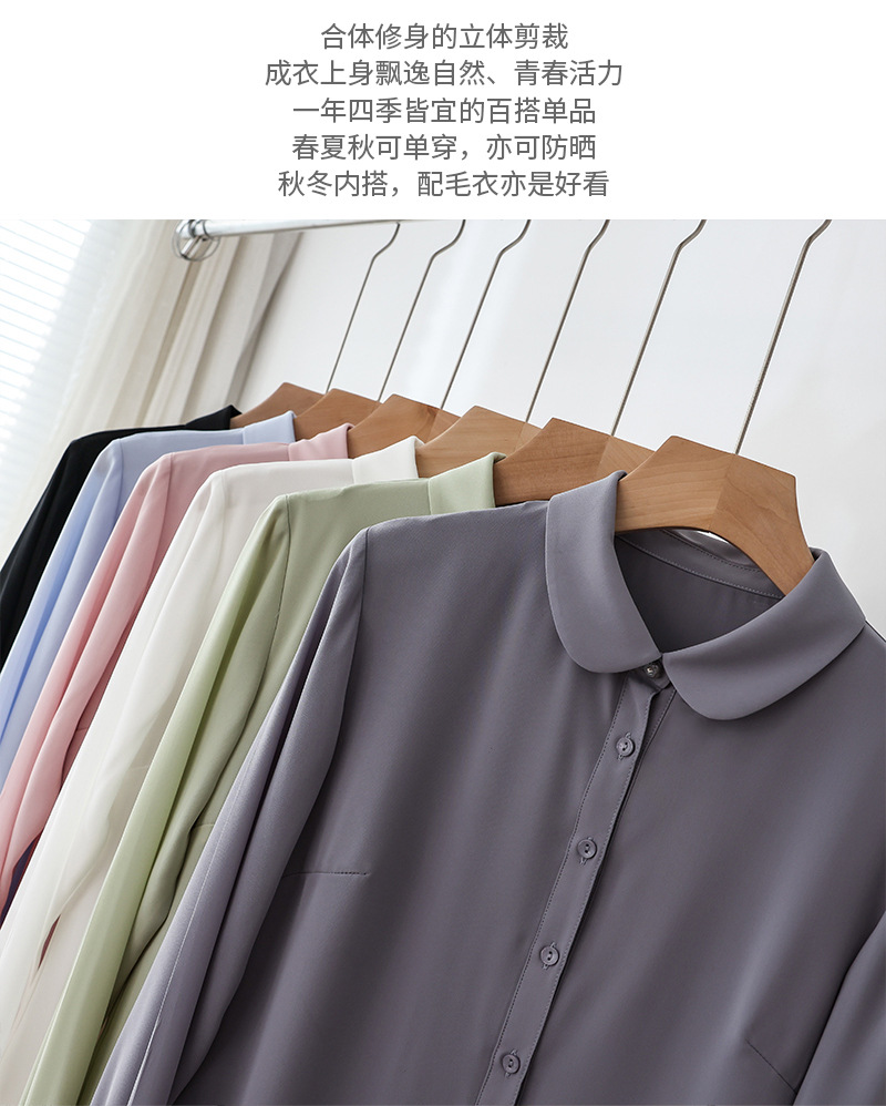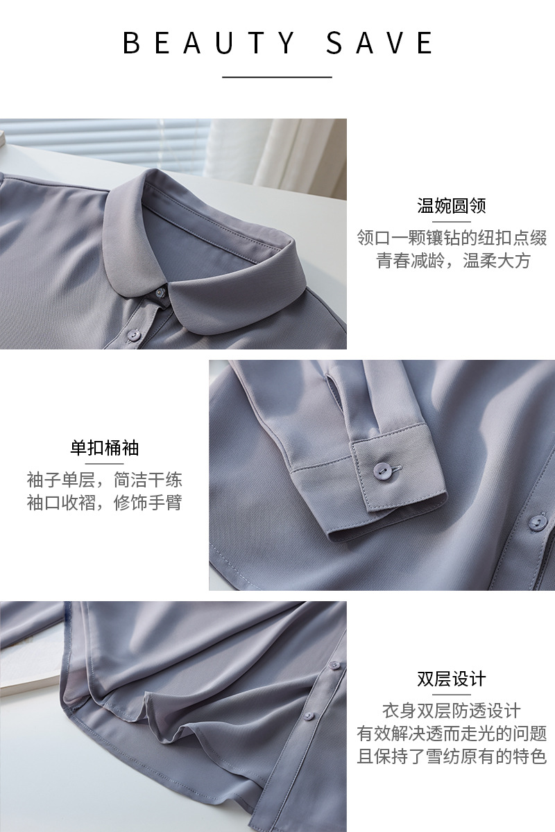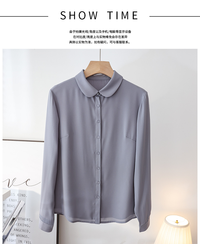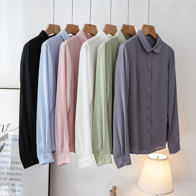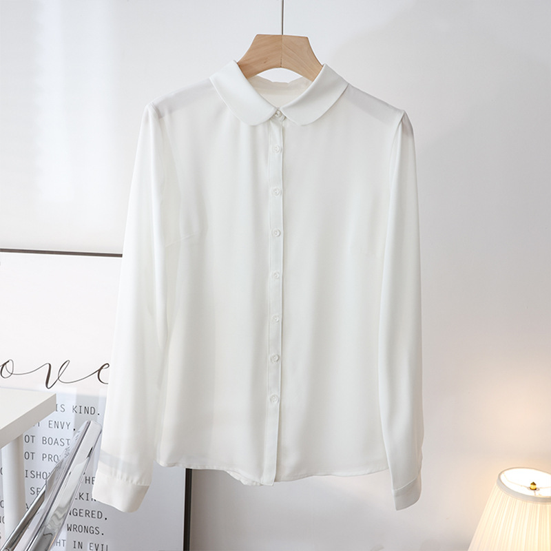 봄 여름 신상품, 부드럽고 통기성 좋은 쉬폰, 나이를 줄여주는 인형 칼라, 긴팔 화이트 셔츠, 여성스러운 OL 베이직 상의스토어 가기