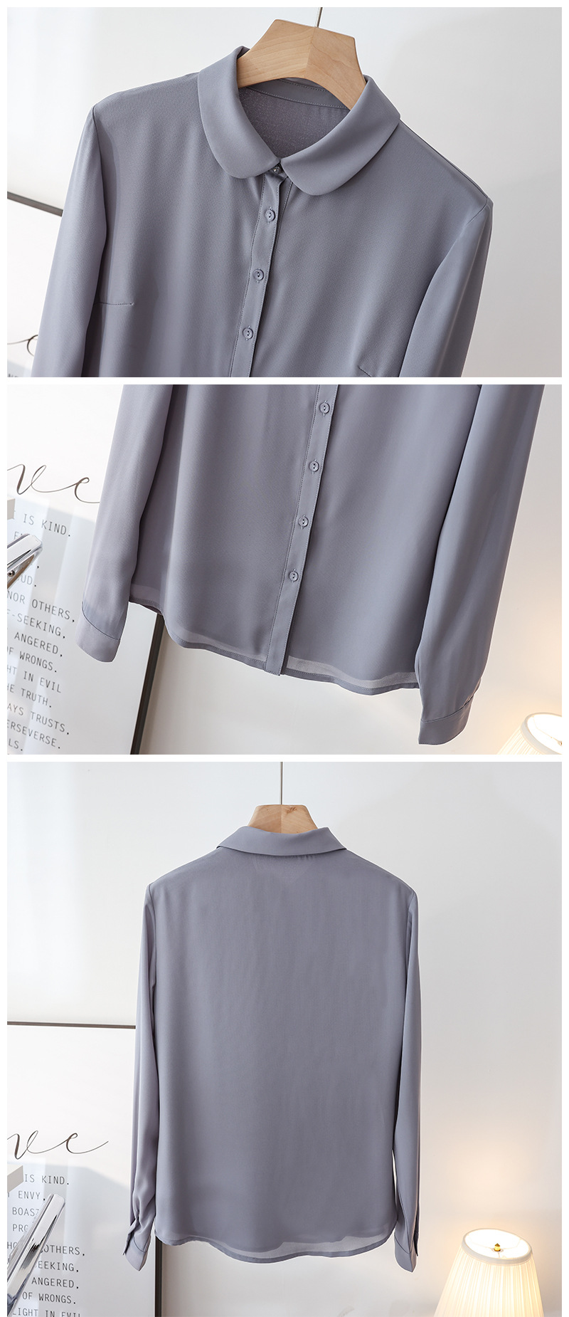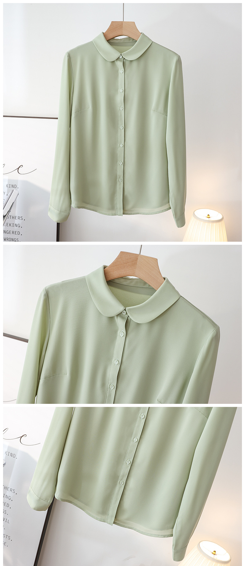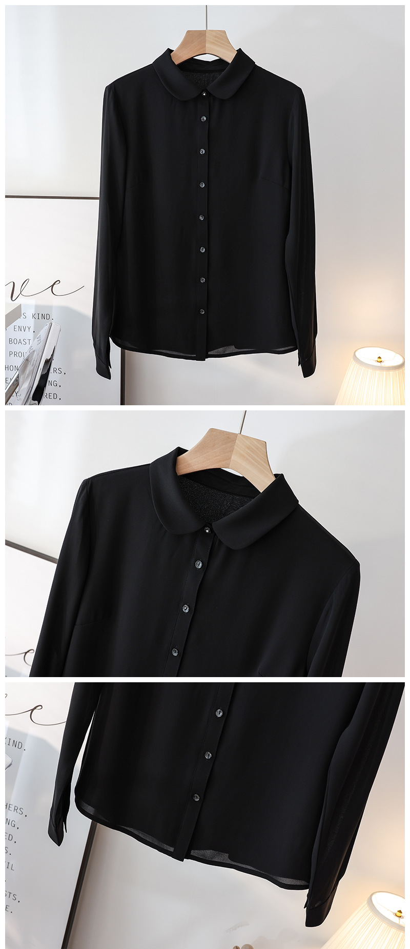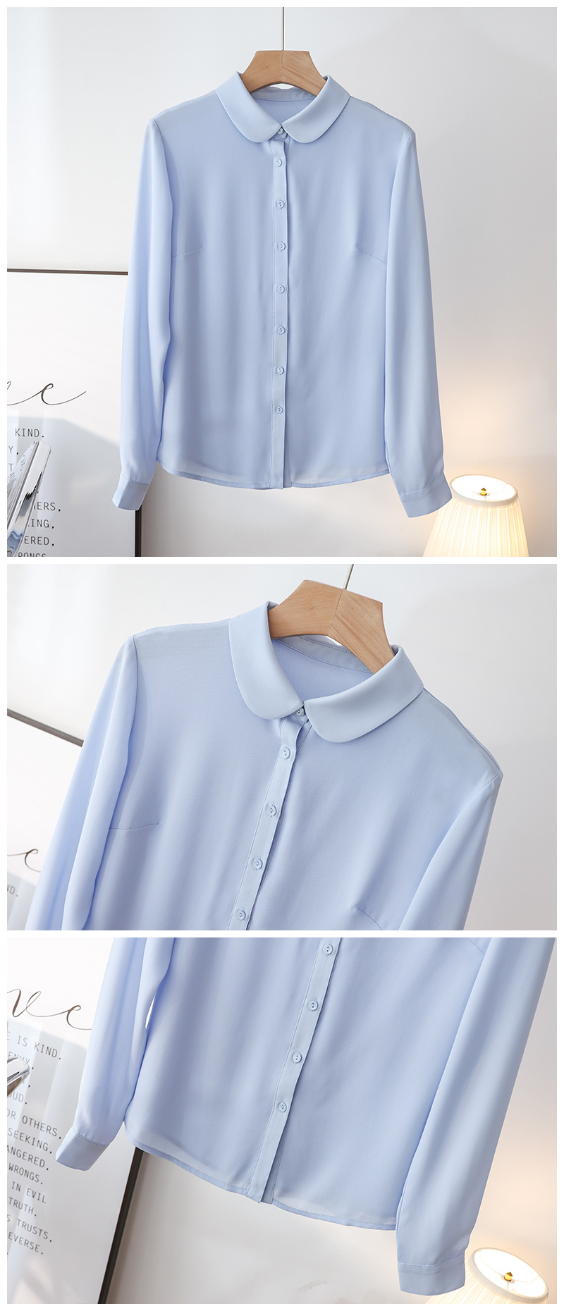 봄 여름 신상품, 부드럽고 통기성 좋은 쉬폰, 나이를 줄여주는 인형 칼라, 긴팔 화이트 셔츠, 여성스러운 OL 베이직 상의스토어 가기