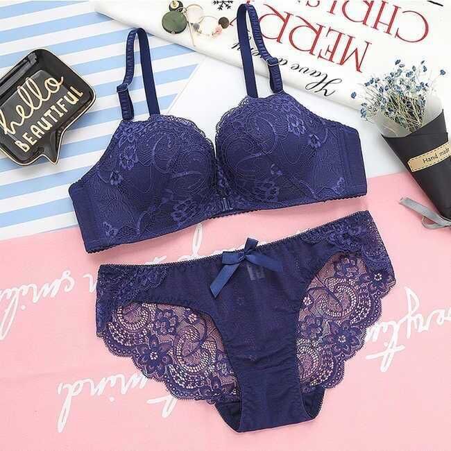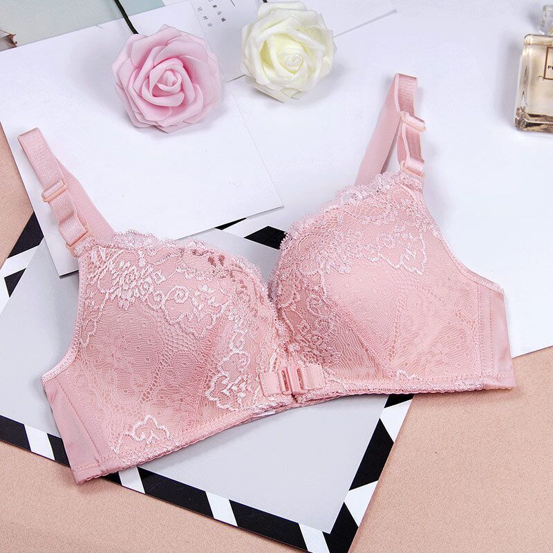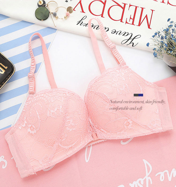 깊은 V 앞 버클 비 테 브래지어 섹시 푸시 업 섹시 레이스 상단 얇은 낮은 두꺼운 소녀 속옷 브래지어 세트