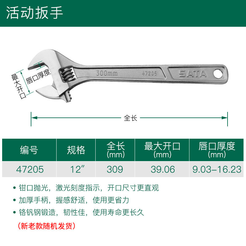 Shida 도구 조절 렌치 조절 렌치 조절 렌치 대형 렌치 렌치 렌치 47201-47208스토어 가기