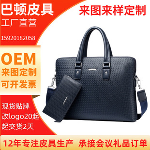 皮具定制款男包男士手提斜挎编织纹牛皮包商务公文包批零代发