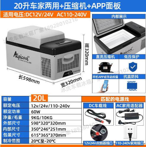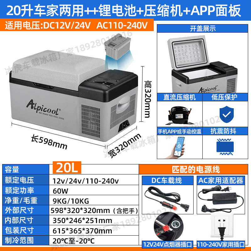 아이스 타이거 자동차 냉장고 압축기 냉동 15-20L 자동차 홈 이중 사용 12v24v 자동차 미니 냉장고스토어 가기