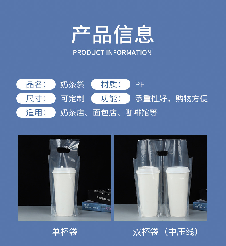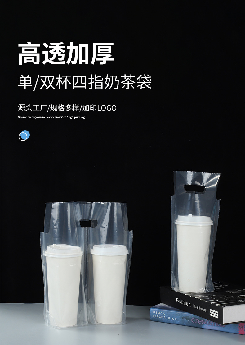 고투명 밀크티 싱글/더블컵 테이크아웃 포장용 핸드백, 두유/커피 음료 포장용 PE 밀크티 포장백