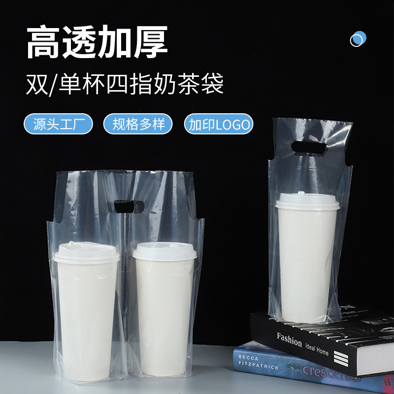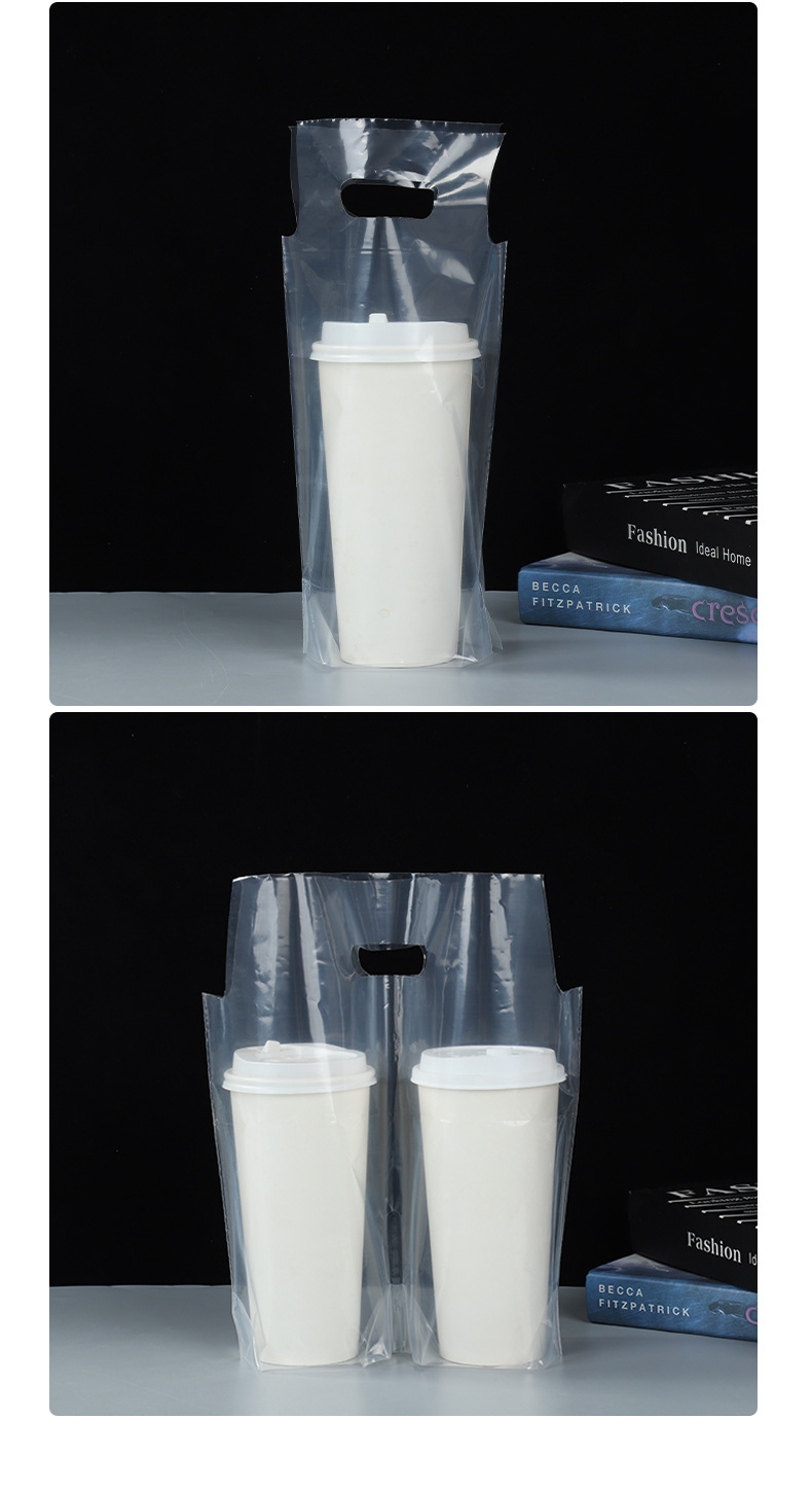 고투명 밀크티 싱글/더블컵 테이크아웃 포장용 핸드백, 두유/커피 음료 포장용 PE 밀크티 포장백스토어 가기