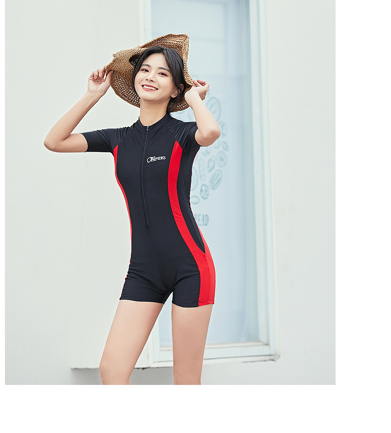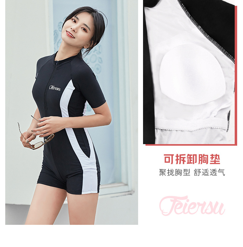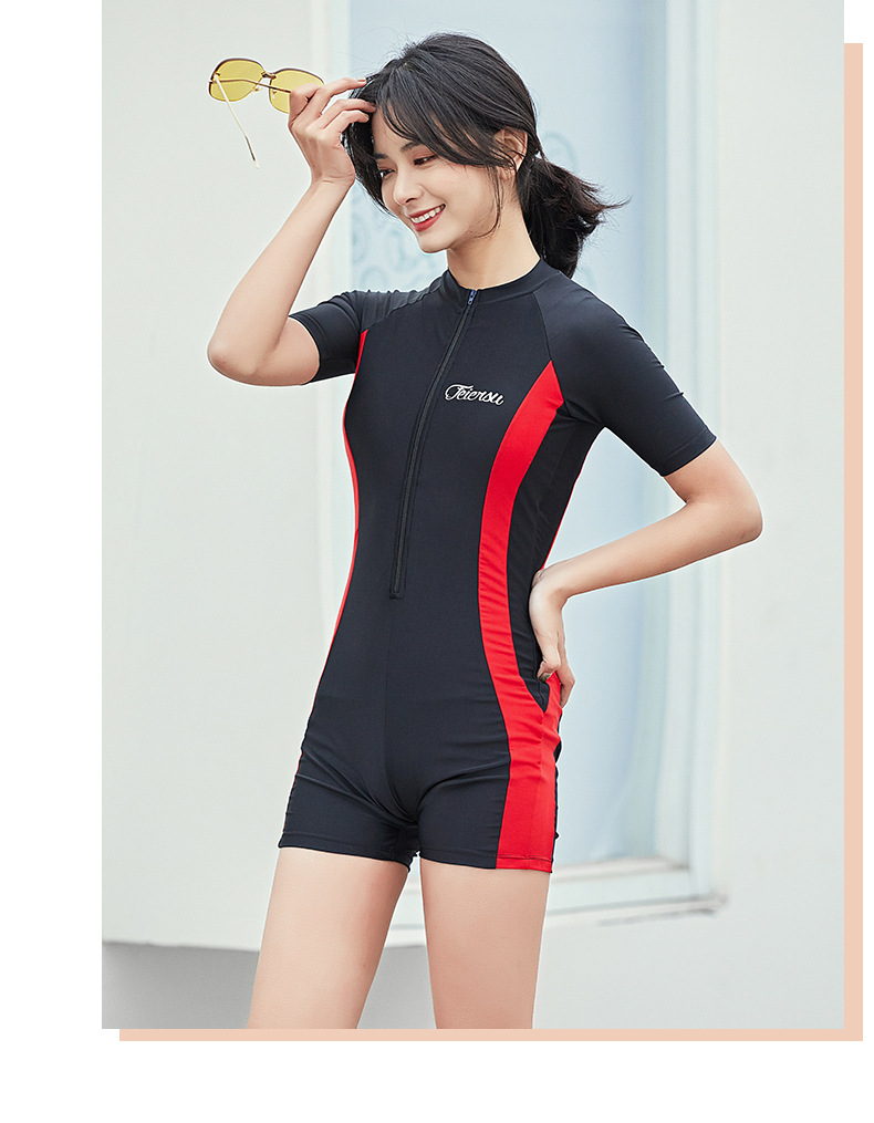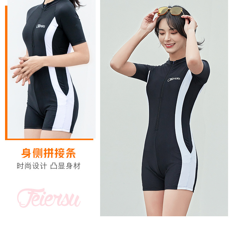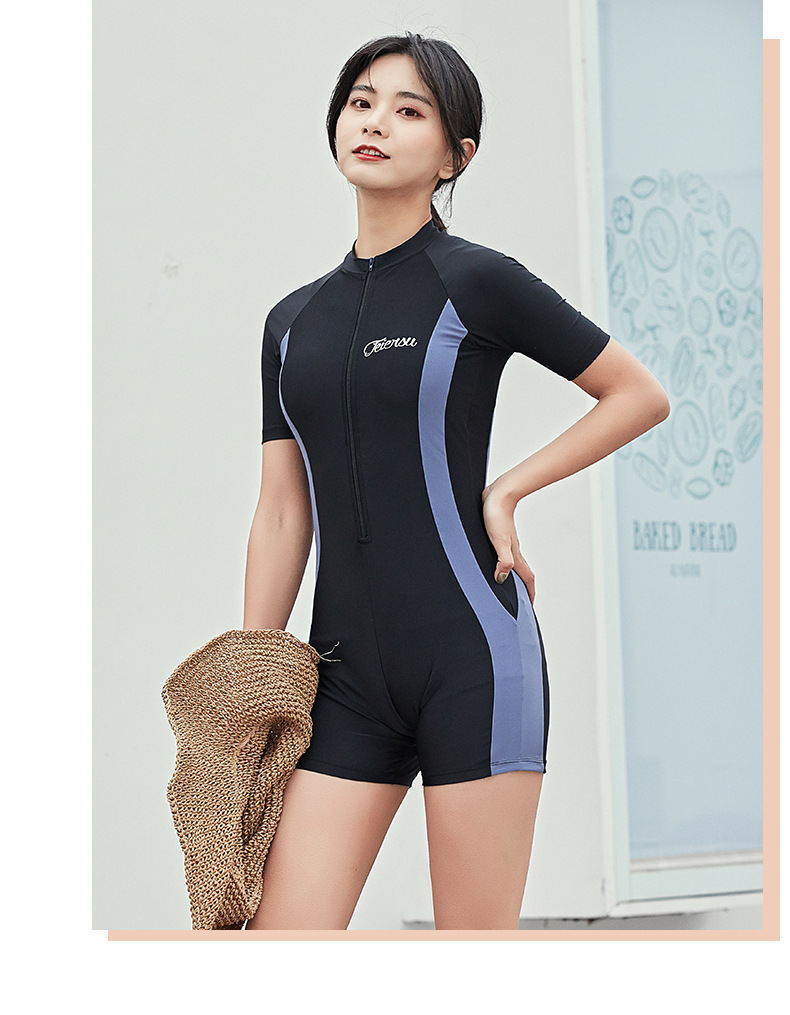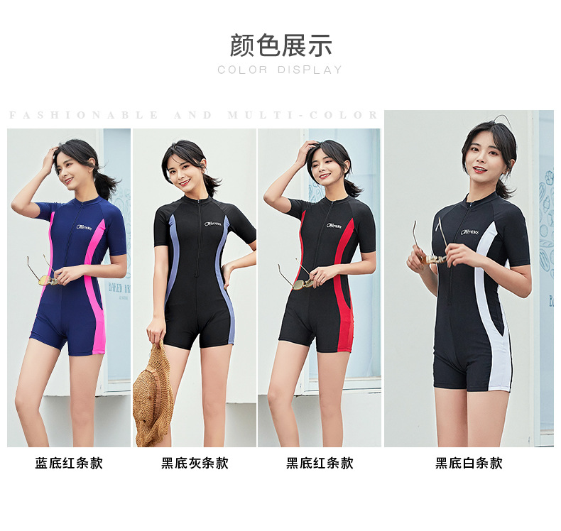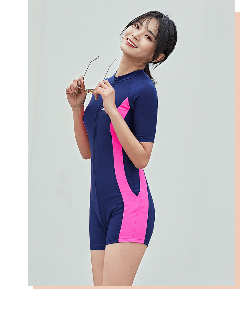수영복 여성용 원피스 복서 스포츠 2022 새로운 스타일 보수적 인 배꼽 덮음 슬리밍 온천 학생 반팔 수영복