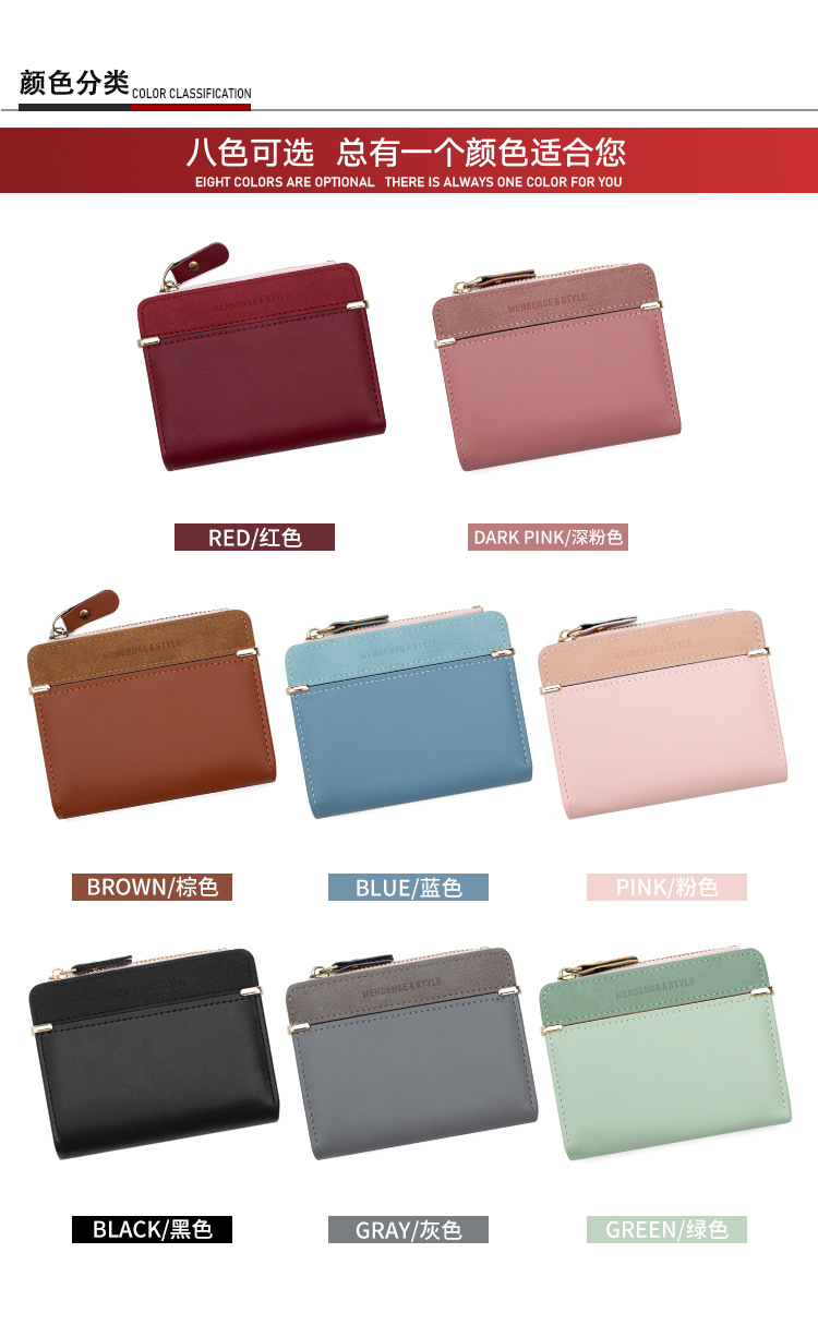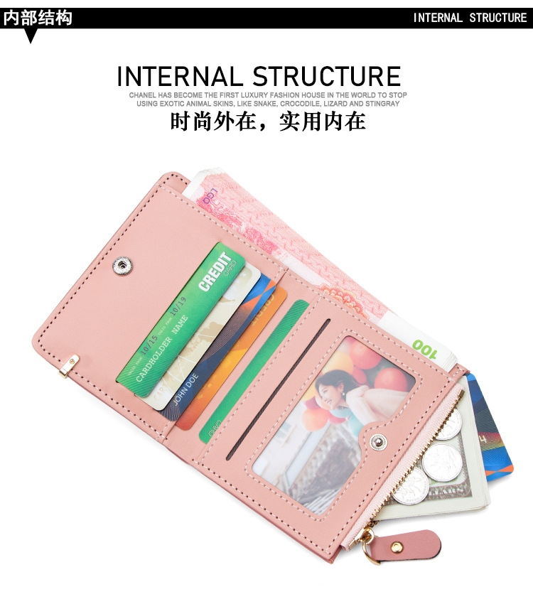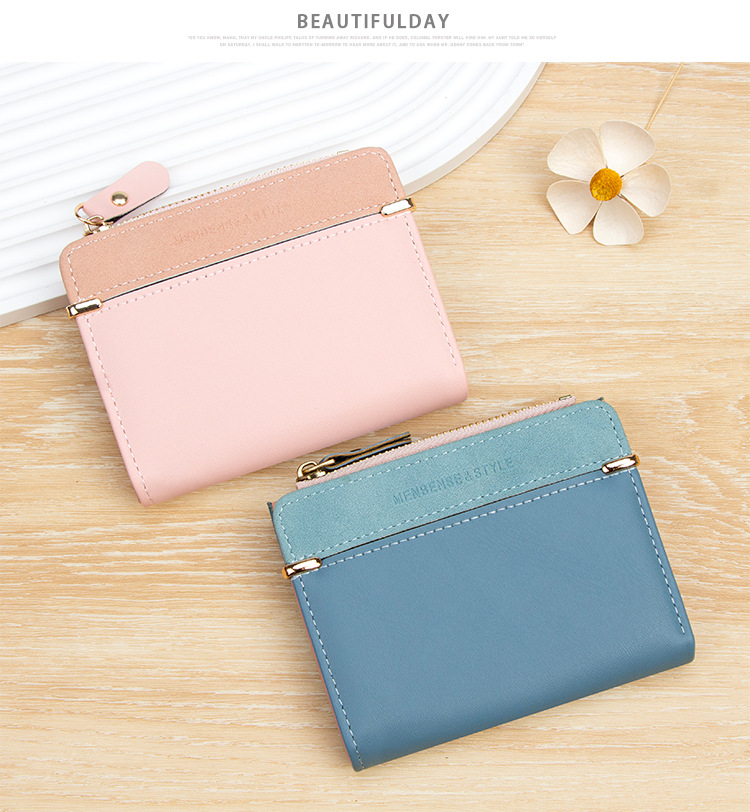 새로운 여성용 짧은 지갑, 패셔너블한 지퍼 동전 지갑, 한국 스타일, 심플하고 다용도, 학생용, 여러 카드 슬롯 지갑, 도매스토어 가기