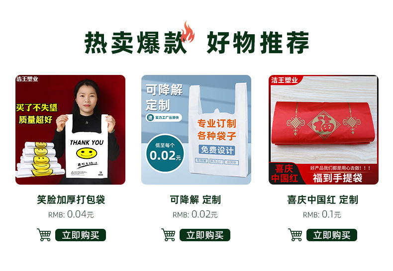 생분해 성 이불 가방 진푸 캐릭터 해피 캐릭터 웨딩 선물 두꺼운 큰 빨간 손 가방 비닐 봉투스토어 가기