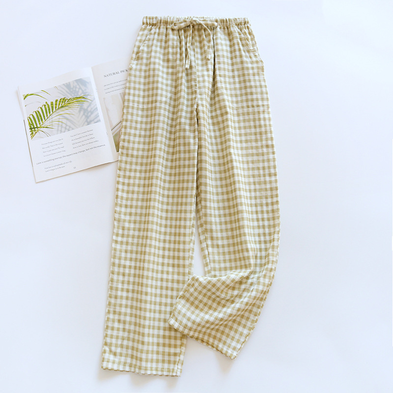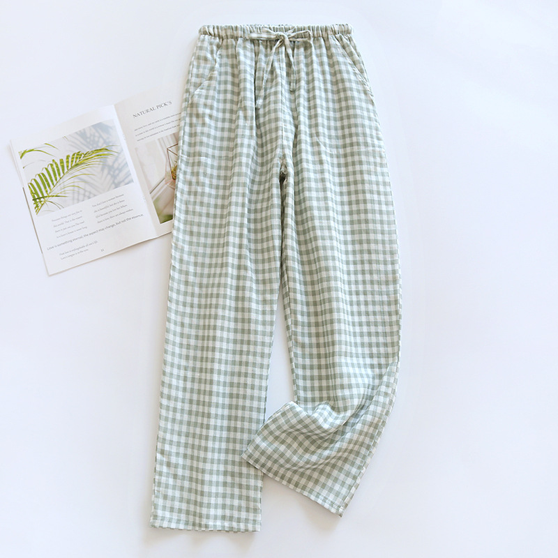 심플한 커플 스타일 봄, 여름, 가을, 겨울 체크무늬 잠옷 바지 남녀공용 긴바지 순면 루즈핏 대형 사이즈 홈웨어 얇고 시원한 느낌