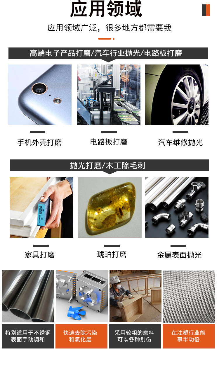我们可以按照客户图纸或样品定制各类材质尺寸的打磨抛光产品,打样周期2-3天。还为有需要的客户提供OEM服务,包括设计独特品牌logo和包装。并持续关注客户的售后体验,让客户享受安心的产品和服务。