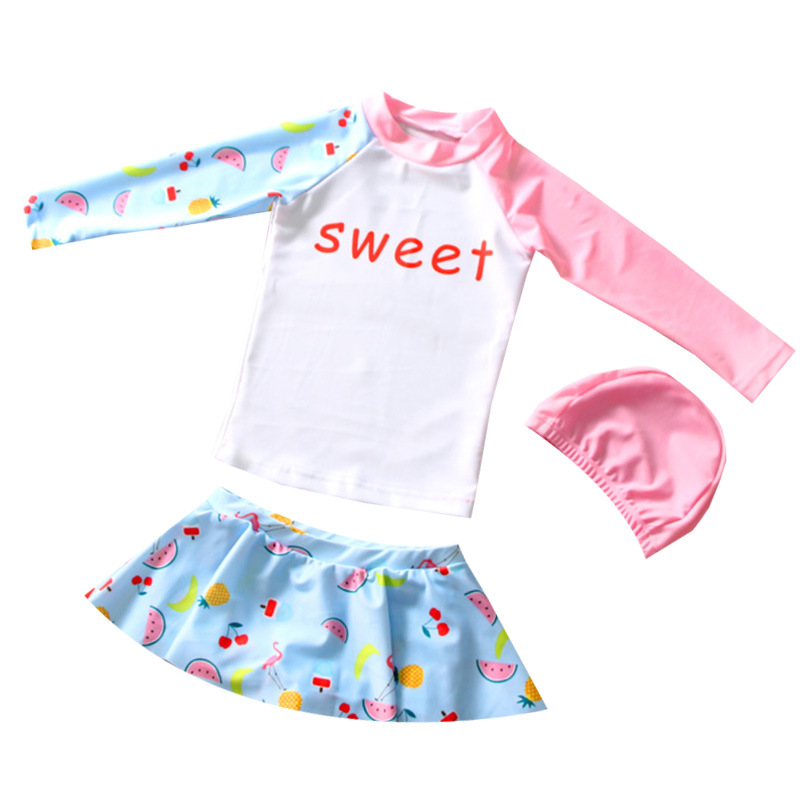 소녀와 어린이를위한 한국 분할 스커트 선 스크린 수영복 한국식 소녀 분할 긴 소매 선 스크린 수영복