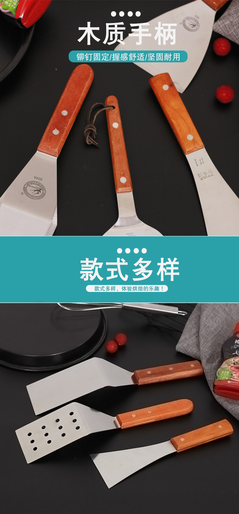 Yahe 베이킹 용품 주방 삽 바베큐 삽 요리 삽 팬케이크 삽 과일 팬케이크 삽 베이킹 스테인레스 스틸 나무 손잡이 삽