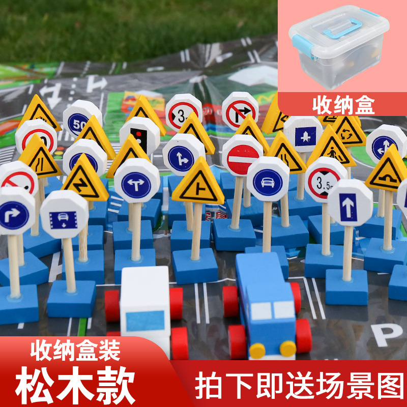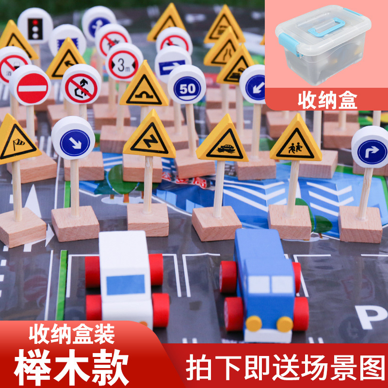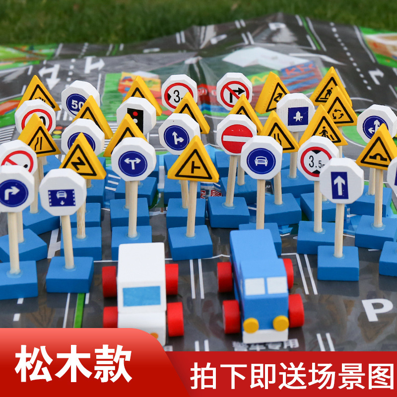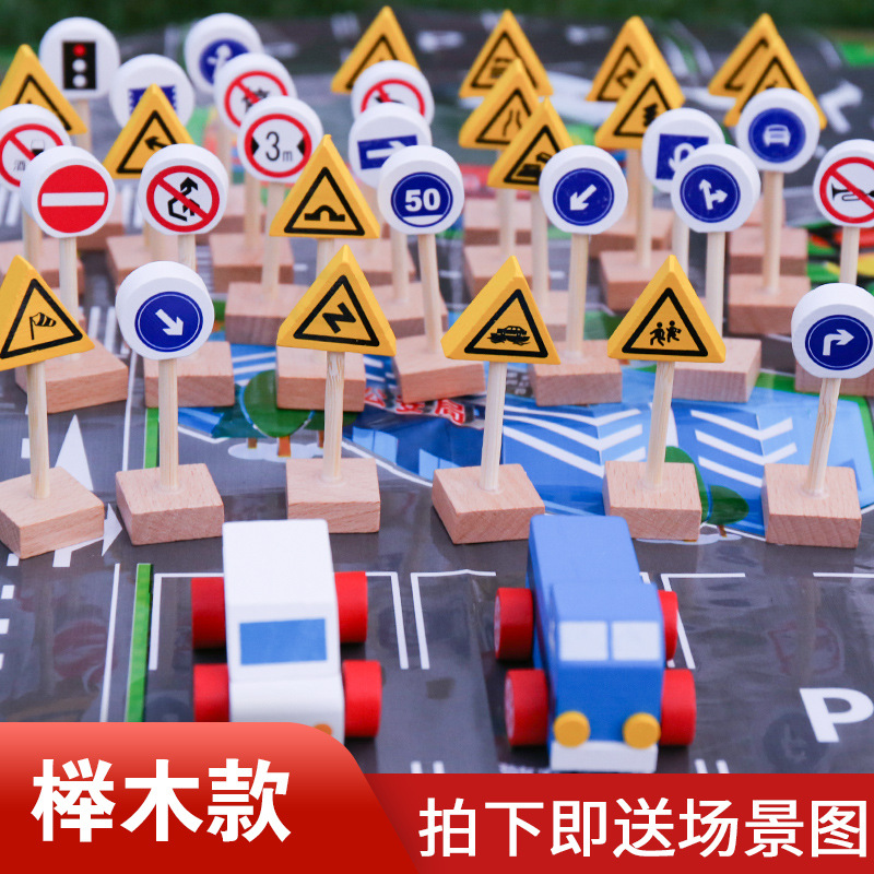 몬테소리 교육 보조 너도밤 나무 소나무 교통 표지판 빛 빌딩 블록 안전인지 게임 도로 표지판 어린이 나무 교육 완구스토어 가기