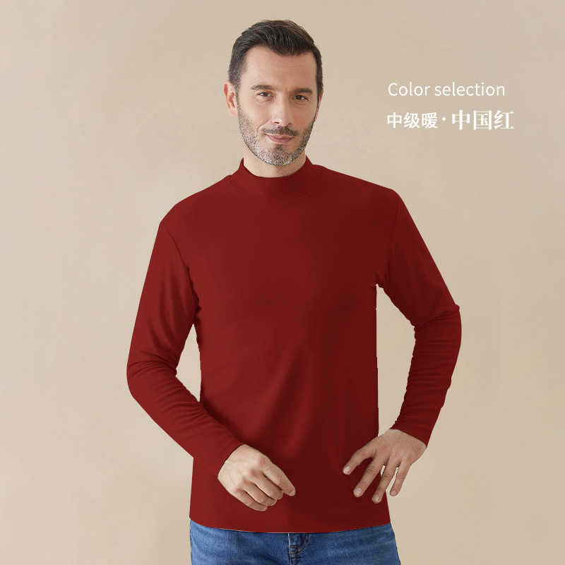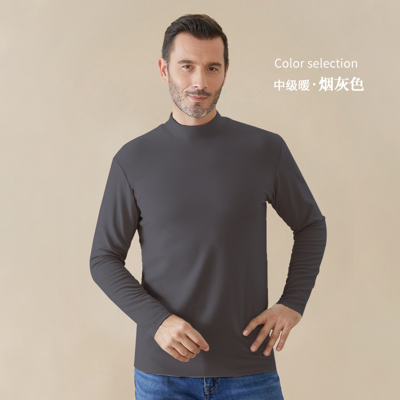 양면 벨벳 베이스 셔츠 남성용 겨울 핫 브러시 세미 하이 칼라 내부 탑 히알루 론산 캐주얼 단색 피부 미용 의류