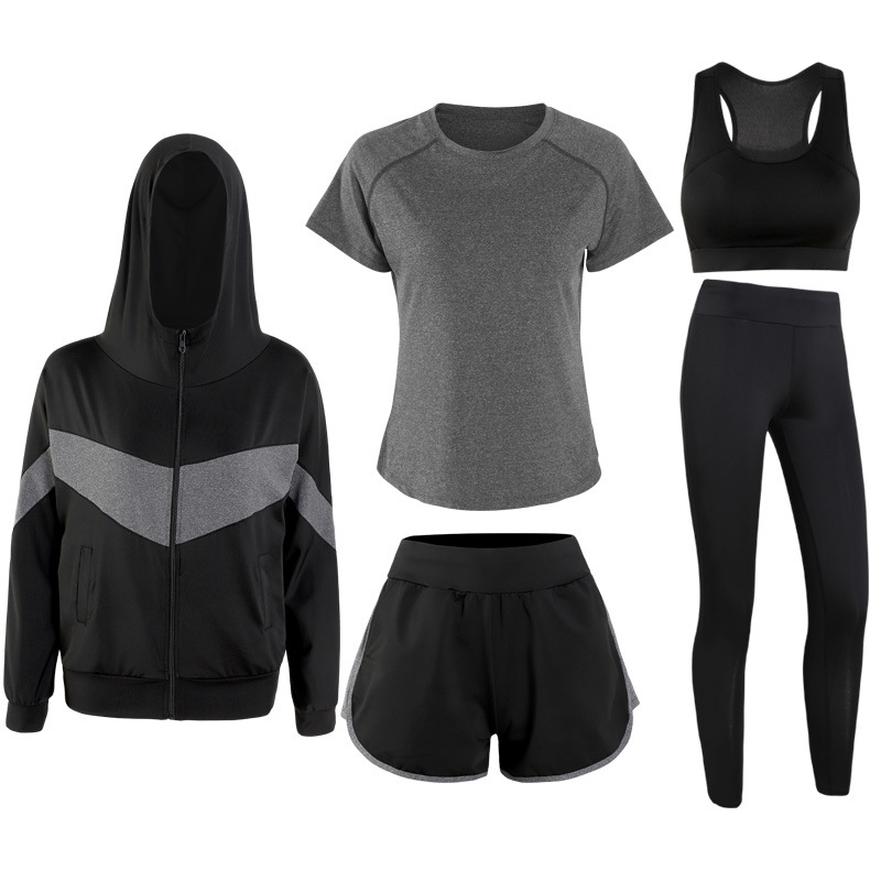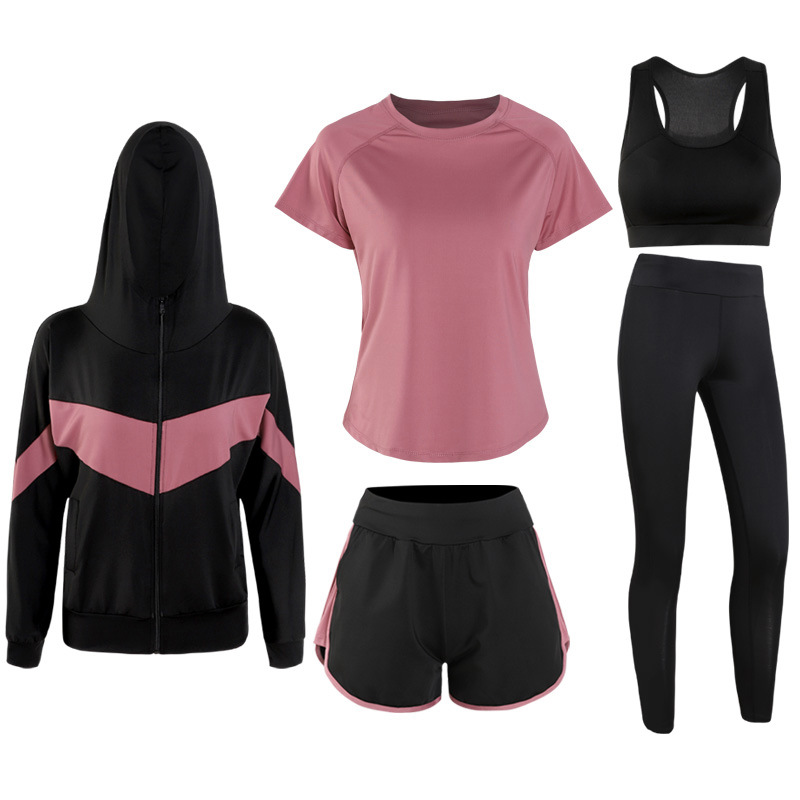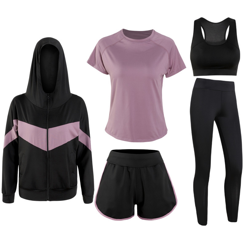 스포츠 세트 여자 2020 새로운 한국식 플러스 사이즈 느슨한 가을과 겨울 빠른 건조 달리기 체육관 5 피스 요가 옷