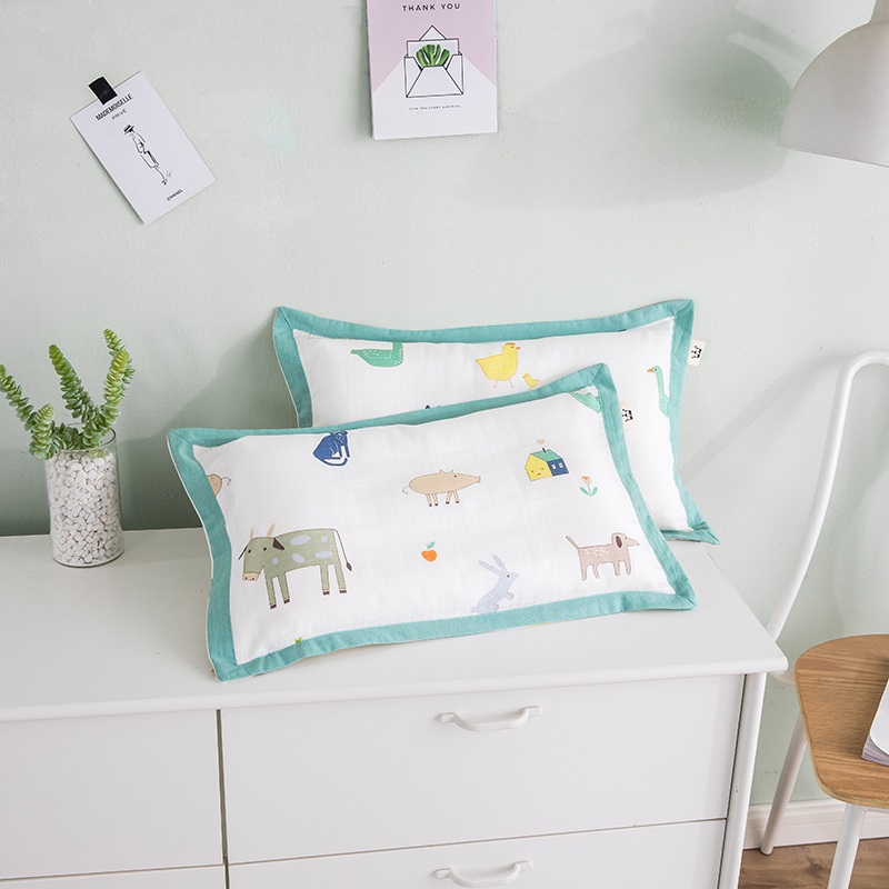 인 코튼 더블 레이어 원사 어린이 베갯잇 면 거즈 유치원 만화 일반 베갯잇 라텍스 베갯잇스토어 가기